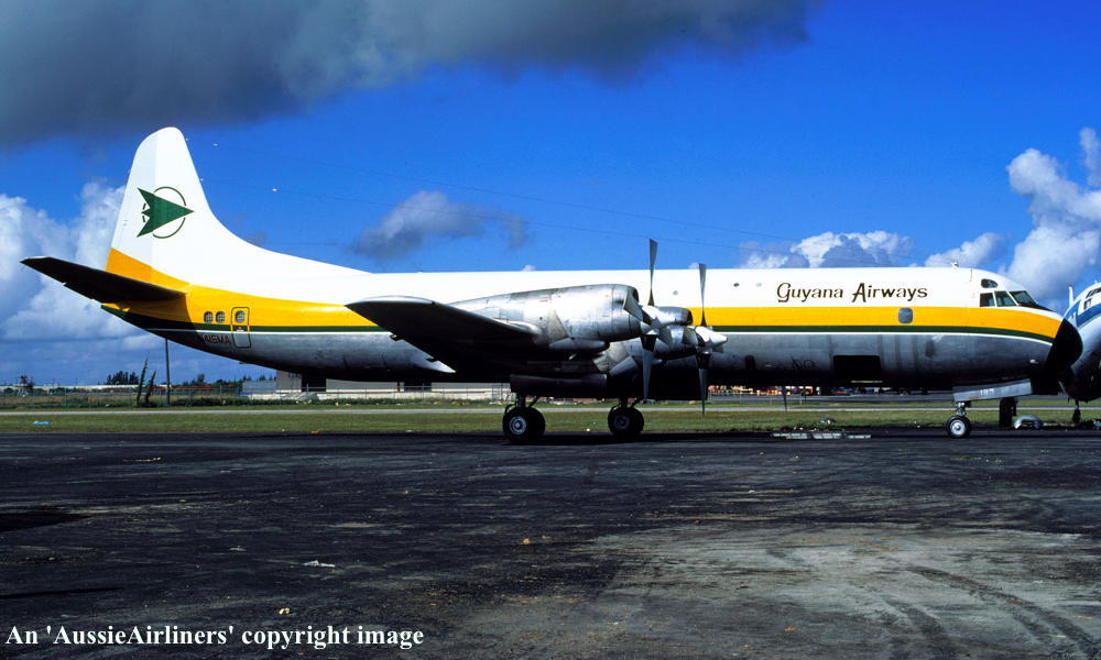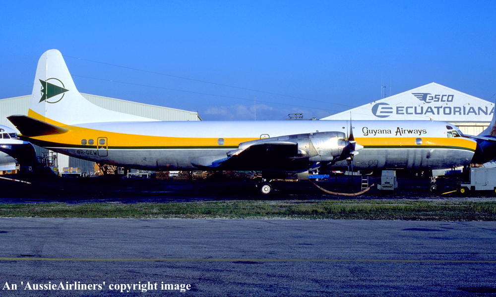 8R-GEW. Guyana Airways - in the standard livery at Miami Airport, date unknown. (R. N. Smith Collection Copyright Image 1808-329.) |