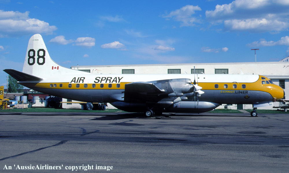 C-FQYB. Air Spray - in the standard livery at an unknown airport, November 1996. (R. N. Smith Collection Copyright Image 1809-019.) |