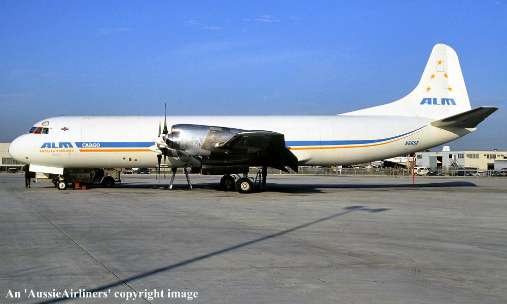 N665F. ALM Antillean Airlines Cargo - in the standard livery at an unknown airport, date unknown. (R. N. Smith Collection Copyright Image 1809-021.) |