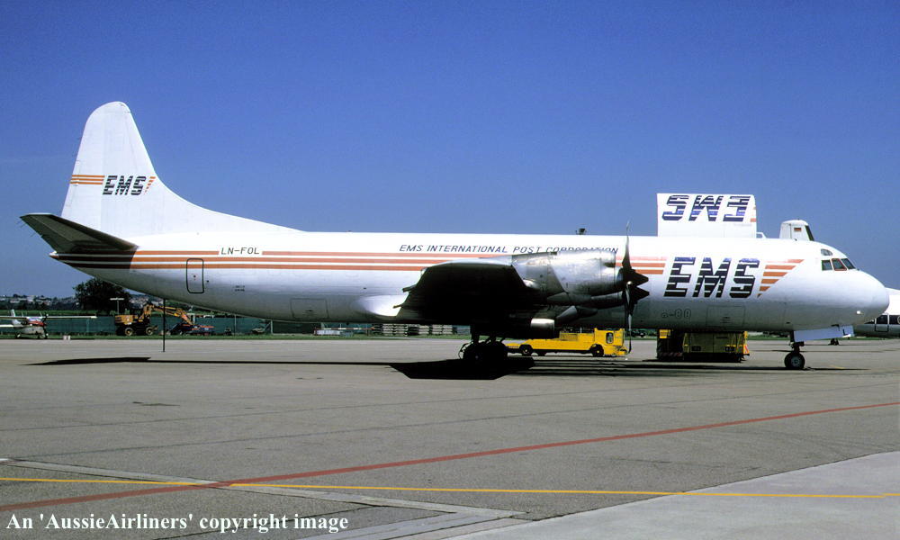 LN-FOL. EMS International Post Corporation - in the standard livery at an unknown airport, May 1992. (R. N. Smith Collection Copyright Image 1808-455.) |