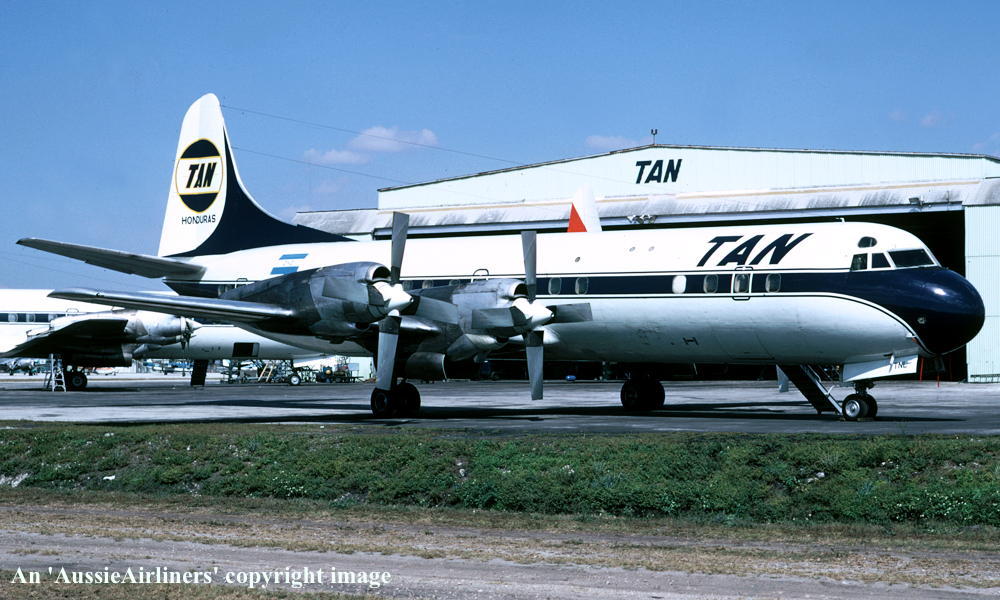 HR-TNL. TAN Honduras - in the standard livery at Miami International Airport, February 1974. (R. N. Smith Collection Copyright Image 1808-748.) |