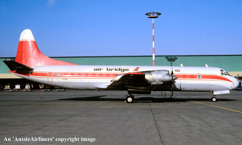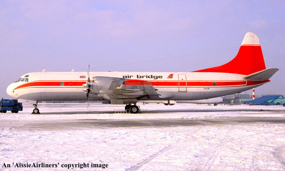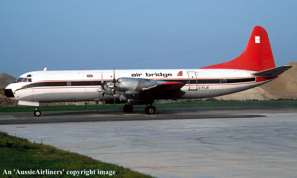 G-FIJR. Air Bridge - in the basic 'Northwest' livery at an unknown airport, October 1992. (R. N. Smith Collection Copyright Image 1808-401.) |