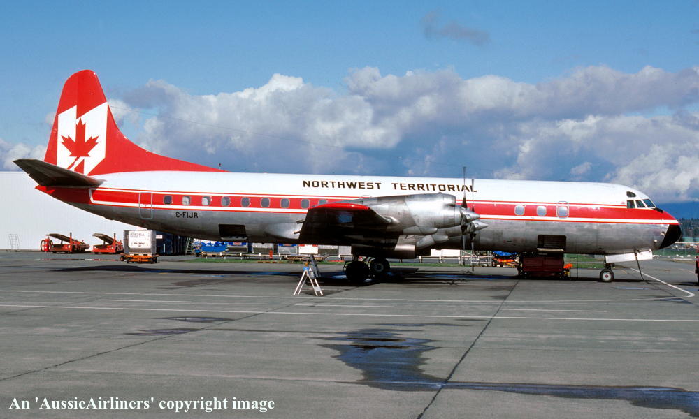 C-FIJR. Northwest Territory - in the standard livery at an unknown airport, date unknown. (R. N. Smith Collection Copyright Image 1808-402.) |