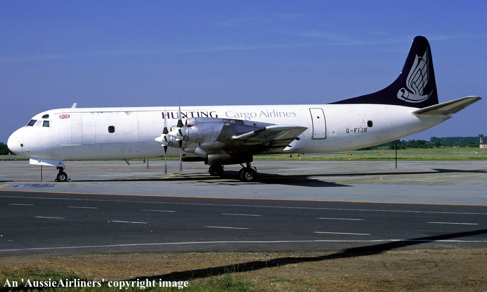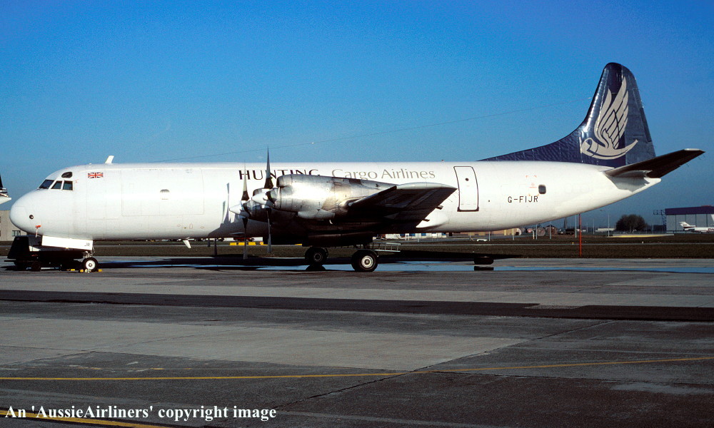 G-FIJR. Hunting Cargo Airlines - in the standard livery at an unknown airport, date unknown. (R. N. Smith Collection Copyright Image 1808-443.) |