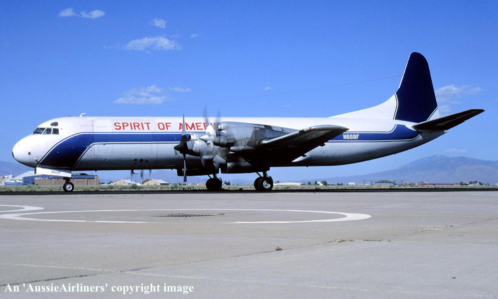 N668F. Spirit of America - in the basic 'Cam Air' livery at an unknown airport, date unknown. (R. N. Smith Collection Copyright Image 1808-340.) |