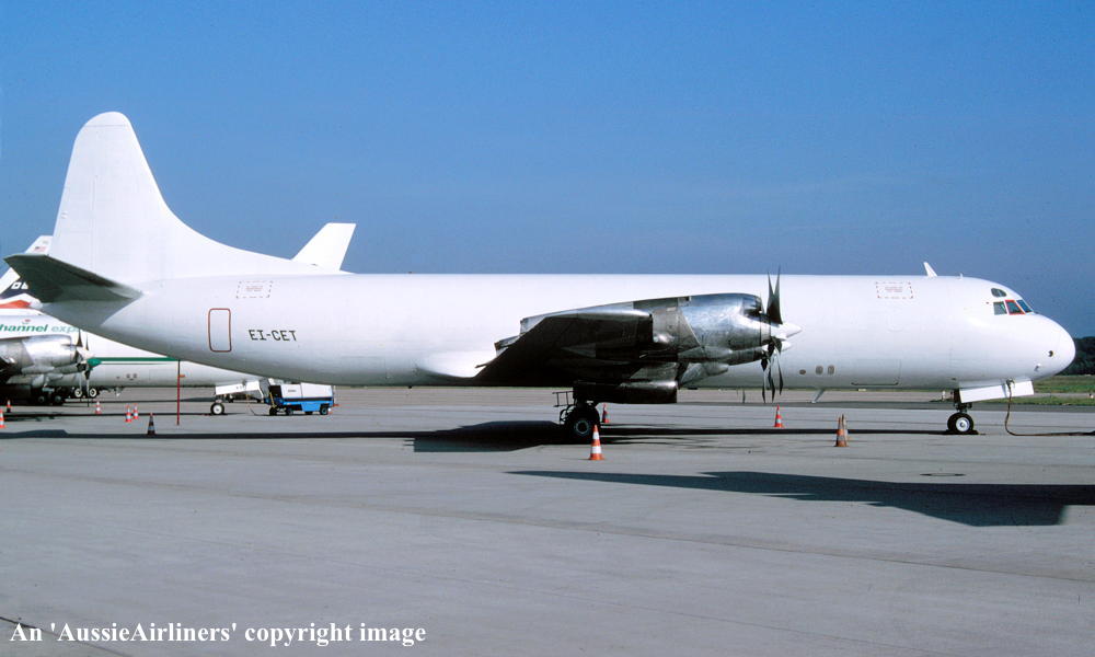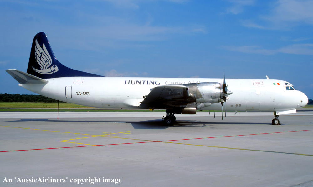 EI-CET. Hunting Cargo Airlines - in the standard livery at an unknown airport, date unknown. (R. N. Smith Collection Copyright Image 1808-815.) |