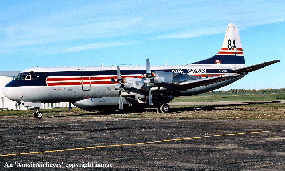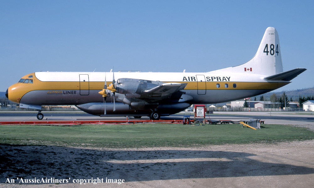 This was the third of four Electras ordered new by Qantas - April 01, 1958 The order was officially announced - May 23, 1958 First flown - November 19, 1959 Powered by Allison 501-D13 turboprop engines Accepted by Qantas Airways at Lockheed (Burbank) facility - November 23, 1959 Entered onto Australian Aircraft Register as VH-ECC - November 24, 1959 Registered to Qantas Airways Ltd, Sydney Departed Burbank on the delivery flight to Australia - November 25, 1959 It arrived at Sydney (Kingsford Smith) on completion of the delivery flight - November 28, 1959 Delivery route: Burbank - San Francisco - Honolulu - Canton Island - Sydney Flight crew: Captains C. Fox, K. Nicholson The aircraft was named 'Pacific Endeavour' Departed Sydney (Kingsford Smith) for Burbank for wing and engine mount modification - January 25, 1961 Ferry route: Sydney - Nadi - Canton Island - Honolulu - Burbank Entered the Lockheed (LEAP) Program as LEAP #73 QEA-3 - January 31, 1961 The LEAP modification program was completed - February 27, 1961 Operated the inaugural Sydney (Kingsford Smith) - Wellington service (Captain J. S. Ross) - October 03, 1961 Operated the inaugural Sydney (Kingsford Smith) - Auckland service (Captain J. S. Ross) - October 04, 1961 Operated the inaugural Auckland - Melbourne (Essendon) service (Captain F. S. Furniss) - October 07, 1961 Operated final revenue service with Qantas - April 17, 1965 Sold to TEAL Air New Zealand to replace the destoyed Electra 'ZK-TEC' - April 1965 Cancelled from Australian Aircraft Register - April 18, 1965 Entered onto New Zealand Aircraft Register as ZK-CLX - April 18, 1965 Registered to Tasman Empire Airways Limited, Auckland, New Zealand Continued to operate Trans-Tasman services in the basic Qantas livery during April 1965 The aircraft was named 'Akaroa' Sold to California Airmotive Corp - February 16, 1968 Departed Auckland on the ferry flight to the United States - February 16, 1968 Cancelled from New Zealand Aircraft Register - February 19, 1968 Sold to Reeve Aleutian Airways - February 22, 1968 Entered onto the United States Aircraft Register as N1968R - February 1968 Leased to Northwest Territorial Airways, Canada - November 1968 Returned to Reeve on termination of the lease - ? Involved in a controlled crash landing at Anchorage, Alaska - June 08, 1983 This was caused by the #4 propeller separating from the aircraft and striking the fuselage as the aircraft climbed through 10,000 feet The decompression resulted in partial collapse of the cabin floor jamming some control cables Deprived of hydraulic braking and nosewheel steering the aircraft departed the runway on landing It remained on its undercarriage, damage to main gear and brakes by fire was extinguished quickly Flight crew: Captain J. Gibson; F/O G. Lintner; S/O G. Laurin The 5 crew members and 10 passengers escaped unharmed Flight crew awarded ALPA (American Airline Pilots Association) Superior Airmanship Award Repaired and returned to service Reeve Aleutian Airlines ceased operations - December 06, 2000 Sold to Air Spray, Canada following the bankruptcy of Reeve Aleutian - January 2001 Entered onto Canadian Aircraft Register as C-GHZI - ? Reregistered to Air Spray 1967 Ltd, Edmonton, Alberta The aircraft was stored at Red Deer, Alberta pending conversion to a water bomber - June 2001 to 2003 Converted to water bomber configuration at Chico, California Ferried Chico - Calgary - Red Deer after conversion in the basic Reeve livery - May 12 - 13, 2004 Current with Air Spray |