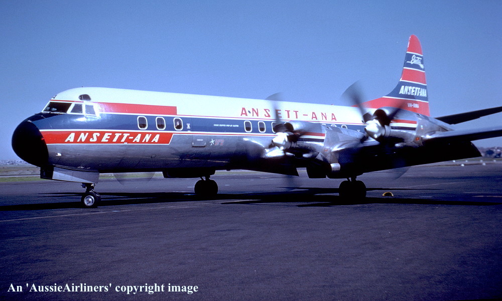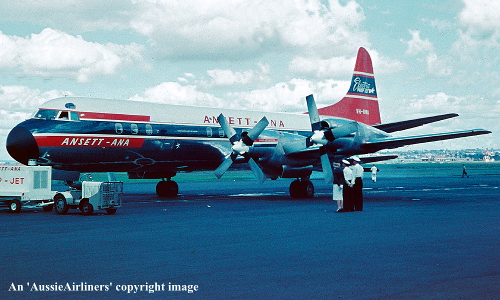 VH-RMA. Ansett-ANA - in the final livery at Sydney Kingsford Smith Airport, November 21, 1966. (R. N. Smith Copyright Image 1808-062.) |