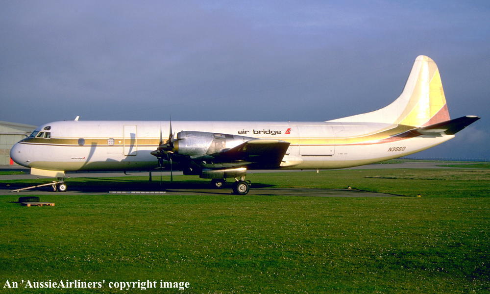 N356Q. TPI - in the standard livery with additional 'Air Bridge' titles at an unknown airport, May 1989. (R. N. Smith Collection Copyright Image 1808-097.) |