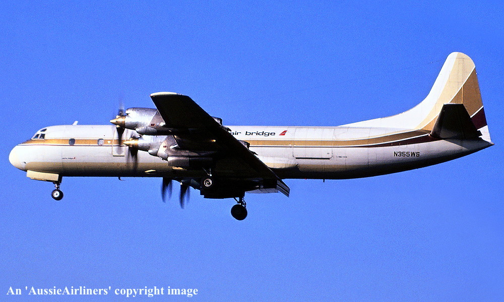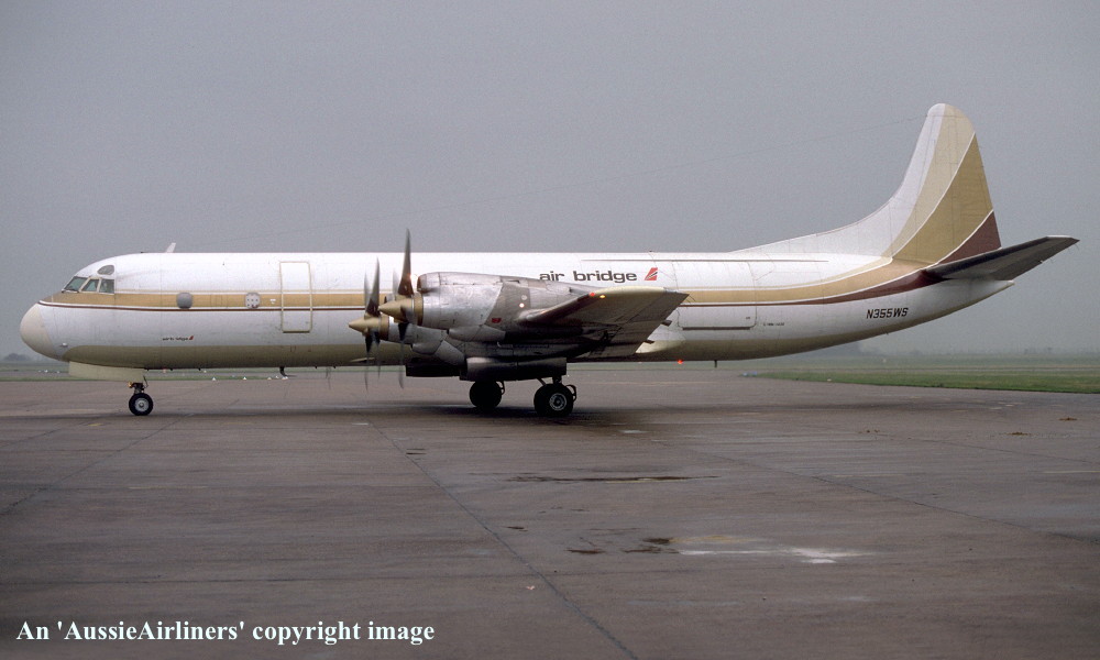N355WS. TPI - in the standard livery with additional 'Air Bridge' titles at an unknown airport, December 1989. (R. N. Smith Collection Copyright Image 1808-098.) |