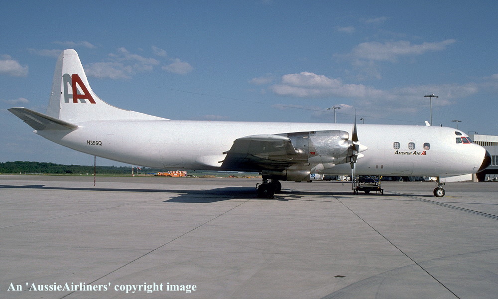 N356Q. Amerer Air - in the standard livery at an unknown airport, May 1997. (R. N. Smith Collection Copyright Image 1808-102.) |