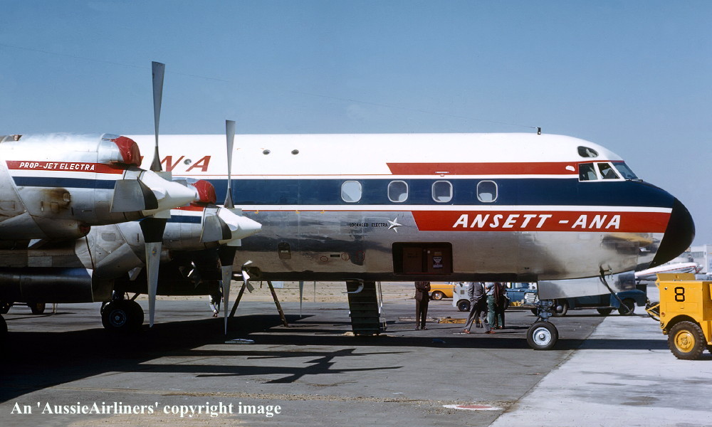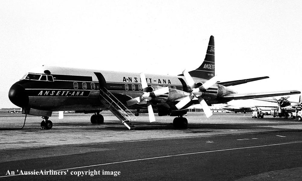 VH-RMA. Ansett-ANA - in the final livery at Melbourne Essendon Airport, May 1970. (G. Bennett Collection Copyright Image 1808-699.) |