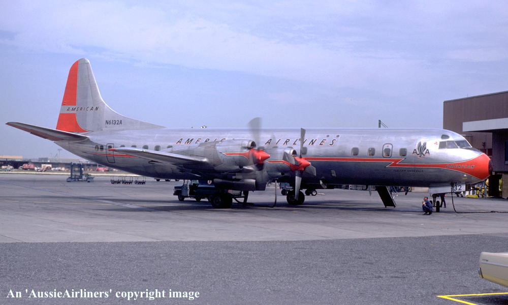 N6132A. American Airlines - in the 'lightning bolt' livery at an unknown airport, June 1967. (R. N. Smith Collection Copyright Image 1808-168.) |