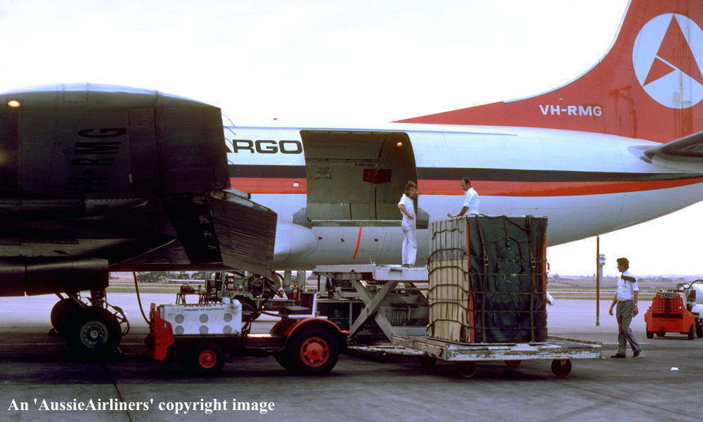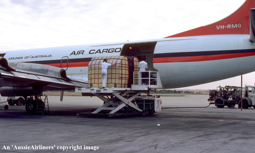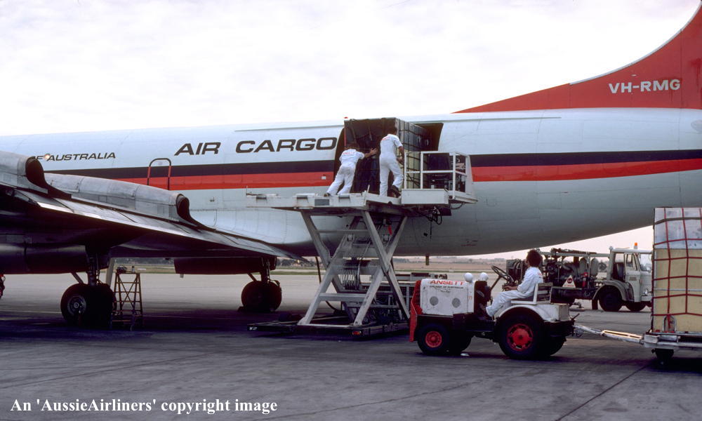 VH-RMG. Ansett Airlines of Australia Air Cargo - in the 'delta' livery at Melbourne Tullamarine Airport, November 1975. (G. Bennett Copyright Image 1808-735.) |