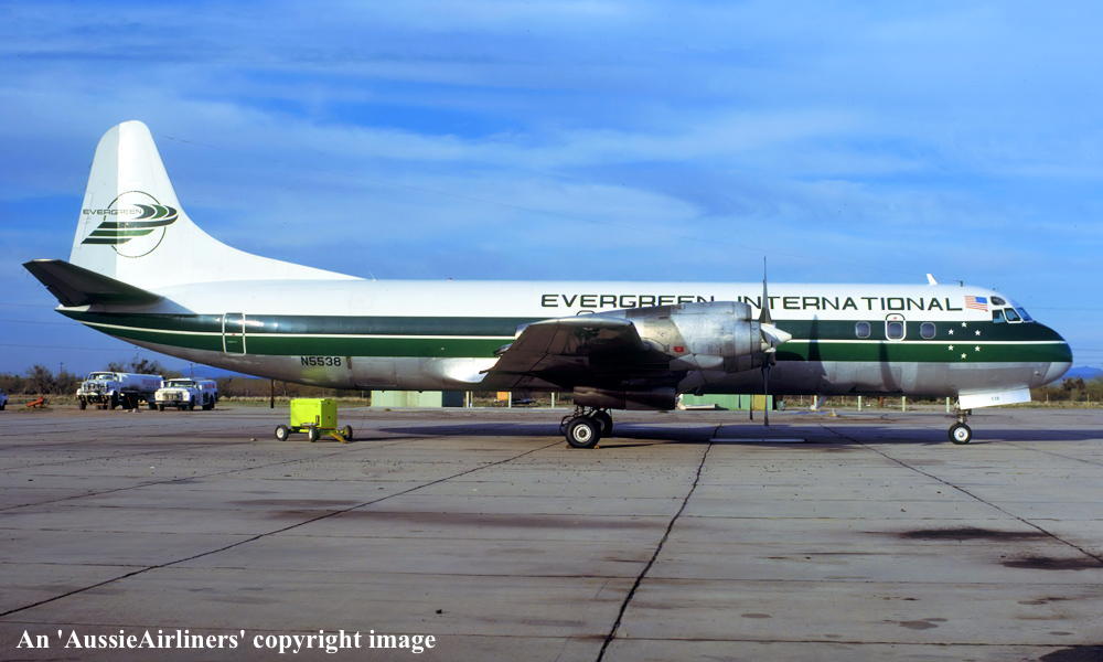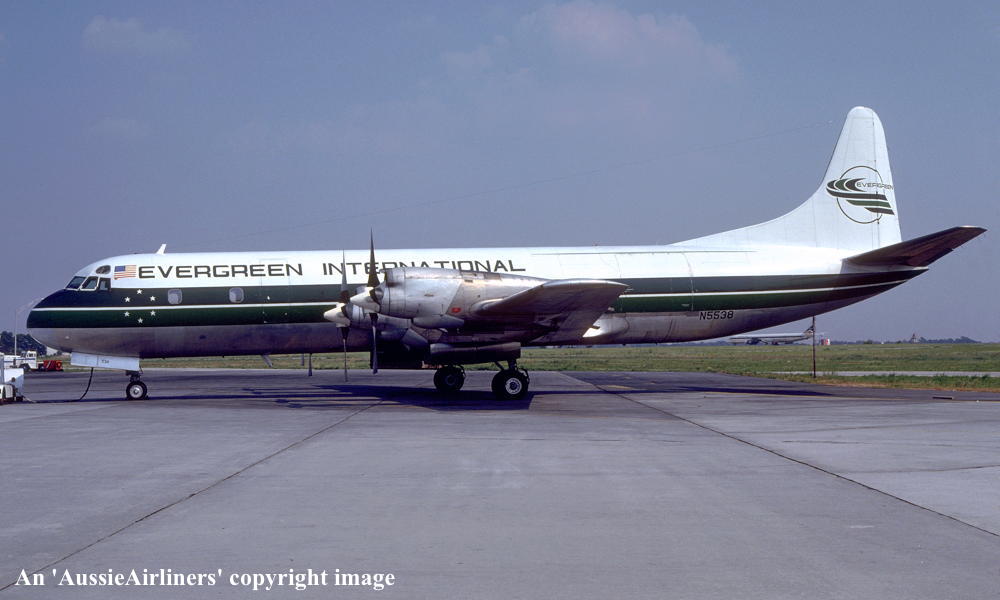 N5538. Evergreen International - in the standard livery at an unknown airport, August 1980. (R. N. Smith Collection Copyright Image 1808-182.) |