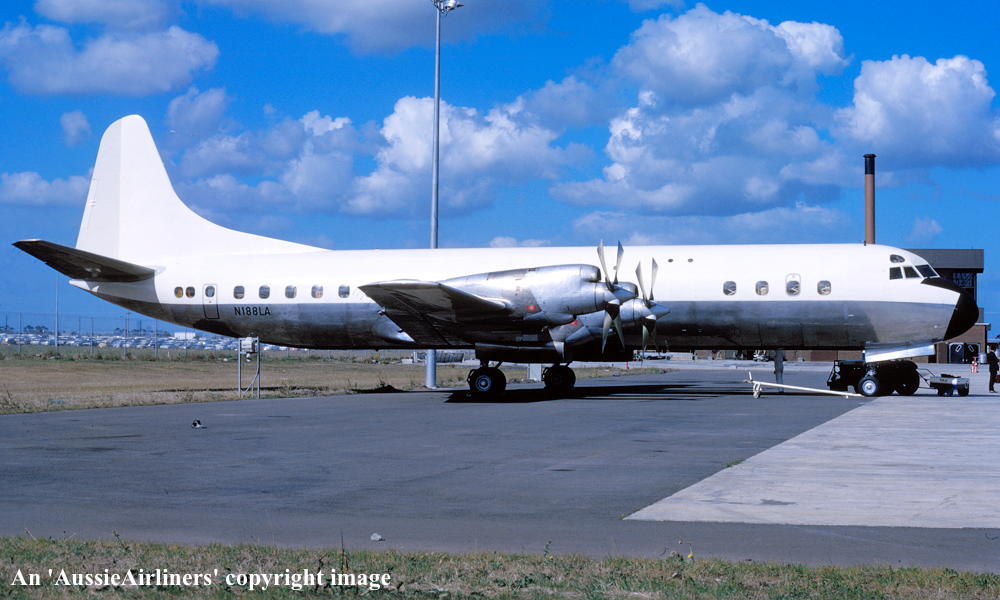 N188LA. Concare Aircraft Leasing - in the all-white livery at Melbourne Tullamarine Airport, April 1972. (G. Bennett Copyright Image 1808-202.) |