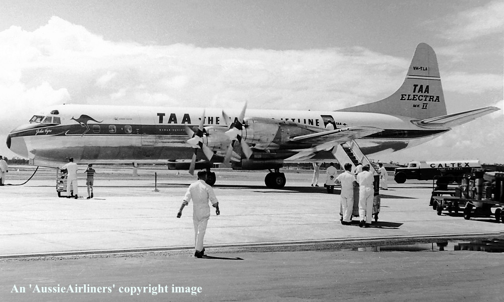 The order for two Lockheed Electras was placed by TAA - October 10, 1958 First flown - May 19, 1959 This was the first Electra delivered with the uplilted engine mounts incorporated during construction Entered onto the Australian Aircraft Register as VH-TLA - June 15, 1959 Registered to Australian National Airways Commission, Melbourne It arrived at Melbourne (Essendon) on completion of the delivery flight - June 24, 1959 Delivery route: San Francisco - Honolulu - Canton Island - Nadi - Melbourne Flight crew: Captains F. Fischer, J. Maloney, J. Hickey; Navigator H. Cast; Engineer A. Wright The aircraft performed a flypast with the newly arrived Viscount VH-TVQ and Friendship VH-TFA before landing The aircraft was named 'John Eyre' Operated its first revenue service Melbourne (Essendon) - Sydney (Kingsford Smith) as TN534 - July 08, 1959 Set a speed record between Melbourne - Brisbane of 129 minutes (Captain W. O. James) - February 15, 1960 Departed Melbourne (Essendon) for Burbank for wing and engine mount modification - January 25, 1961 Ferry route: Melbourne - Nadi - Canton Island - Honolulu - Burbank Flight crew: Captains R. B. Keig, I. A. F. Clarke, R. Lauchland; F/O D. W. R. Pummeroy; F/E R. C. Lane Entered the Lockheed (LEAP) Program as LEAP #71 TAA-1 - January 27, 1961 LEAP modification completed - February 23, 1961 Departed Burbank on the ferry flight to Melbourne (Essendon) - February 23, 1961 Flight crew: Captains V. C. Austen, M. I. Fitzgerald, T. R. Bennet; F/O K. J. Purnell; F/E F. C. Storer Set a speed record on Brisbane - Melbourne (Essendon) sector of 148 mins 30 seconds - March 13, 1961 Set a speed record on Melbourne - Sydney sector of 54 minutes (Captain G. J. White) - July 08, 1961 The aircraft was grounded by a Department of Civil Aviation order - July 24, 1964 This was the result of corrosion specks being found in the wing of TAA Electra VH-TLB These specks had been misidentified as being wing cracks This grounding order was lifted on the Australian Electra fleet - July 27, 1964 Operated its final revenue service Canberra - Sydney (Kingsford Smith) as TN406 - April 30, 1971 Ferried Sydney (Kingsford Smith) - Brisbane for storage (Captain Humphries) as TN2890 - April 30, 1971 The aircraft had flown 34,063 hours with 26,925 cycles Test flown at Brisbane (Captain S. Arnold, R. Hickey; F/E R. Verity) - September 15, 1971 Test flown at Brisbane before being ferried Brisbane - Melbourne direct in 2 hrs 35 mins - February 07, 1972 Flight crew: Captains S. Arnold, A. Hofman; F/E R. Verity Sold to Concare Aircraft Leasing - March 12, 1972 Entered onto the United States Aircraft Register as N188LA - March 1972 Test flown at Melbourne (Tullamarine) as VH-TLA / N188LA - March 26, 1972 Cancelled from the Australian Aircraft Register - April 05, 1972 Departed Melbourne (Tullamarine) on the ferry flight to the United States - April 12, 1972 Ferry route: Melbourne - Port Moresby - Wake Island - Hilo - Burbank Lease / purchased from Concare Aircraft Leasing by Transair Corp - 1972 Leased to Royal Air Lao - May 1972 Entered onto the Laotian Aircraft Register as XW-PKA - 1972 The aircraft was named 'Tiao Anou' It arrived at Vientiane on the ferry flight from Miami, Florida - July 18, 1972 Grounded and used as a source of parts to keep Electra XW-PKB airworthy - December 1973 Fearing seizure by the new Lao Government work commenced to return it to airworthy status - August 1974 Parts were sourced from XW-PKB which was in Hong Kong for overhaul Departed Vientiane for Seletar, Singapore for overhaul by Lockheed - September 20, 1974 Flight crew: Captains A. Ogle; F/O A. Adolph; F/E W. Dettori; Mechanic P. Dreith The aircraft arrived at Seletar after an exciting ferry flight - September 21, 1974 This aircraft did not fly again Sold to American Jet Industies along with Electra XW-PKB - 1975 Entered onto the United States Aircraft Register as N188LA - January 13, 1976 Registered to American Jet Industries Inc Scrapped at Seletar, Singapore - 1976 Cancelled from the United States Aircraft Register as 'destroyed' - March 16, 1976 |