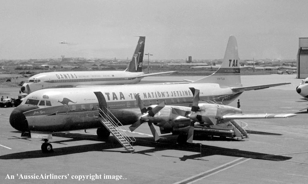 VH-TLA. TAA The Nation's Jetline - 'John Eyre' in the standard livery at Sydney Kingsford Smith Airport, December 29, 1966. (R. N. Smith Copyright Image 1808-189.) |
