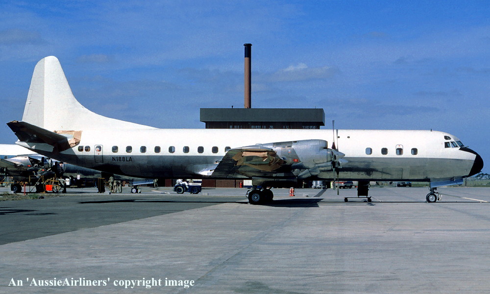 VH-TLA. Lockheed 188A Electra. c/n 1061. Was also registered as: N188LA; XW-PKA. |
