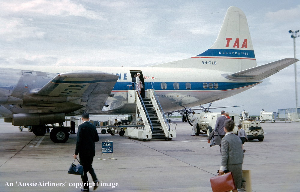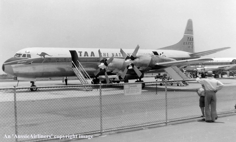 VH-TLB. TAA The Nation's Jetline - 'John Gilbert' in the 'dayglow' livery at Sydney Kingsford Smith Airport, June 1960. (R. N. Smith Collection Copyright Image 1808-204.) |