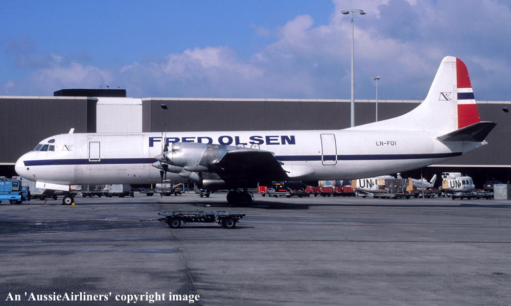 LN-FOI. Fred Olsen - in the revised livery at an unknown airport, February 1992. (R. N. Smith Collection Copyright Image 1808-275.) |