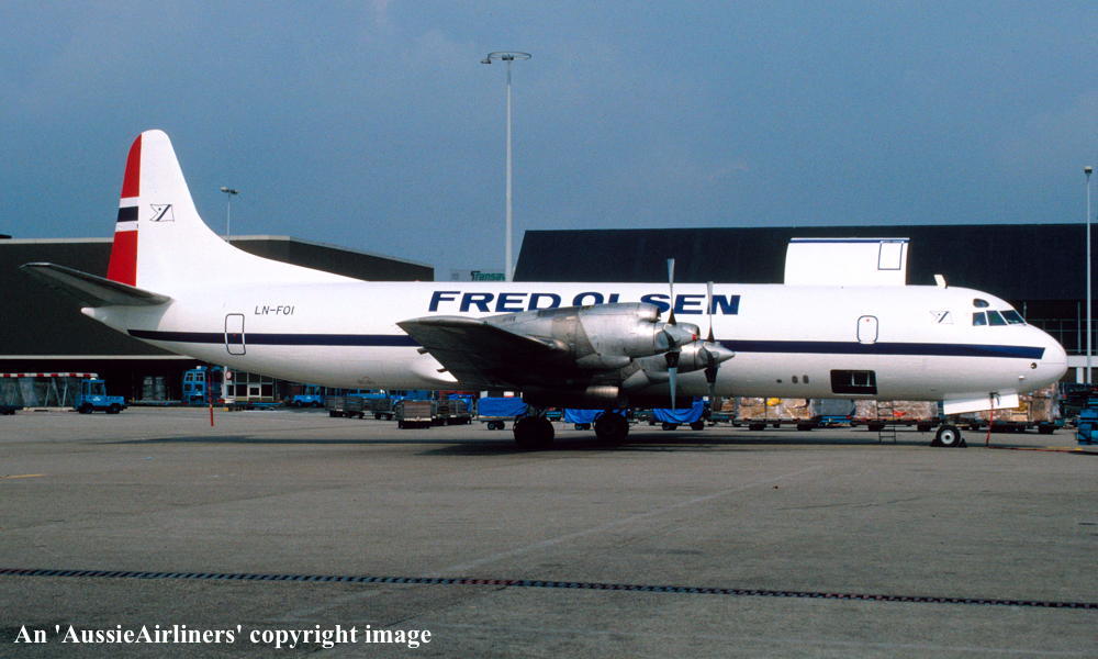 LN-FOI. Fred Olsen - in the revised livery at Amsterdam Schiphol Airport, March 1995. (R. N. Smith Collection Copyright Image 1808-274.) |