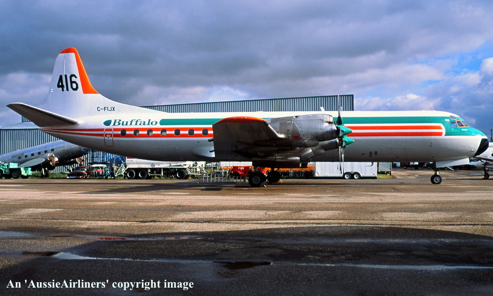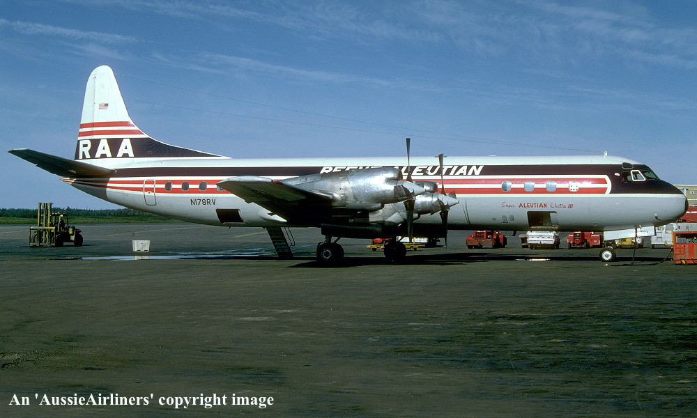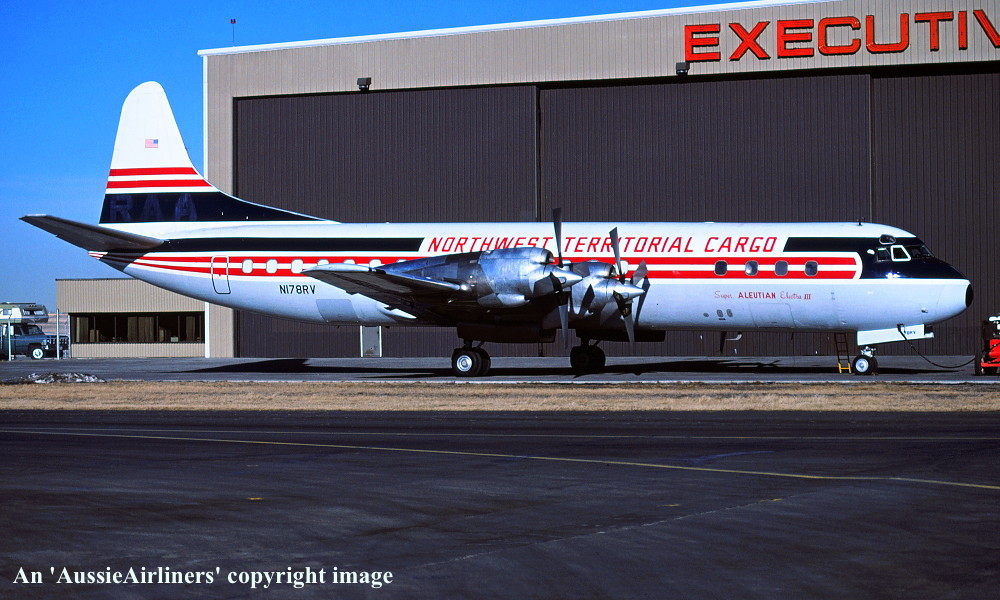 This was the second of three aircraft ordered new by Tasman Empire Airways Ltd The purchase agreement was signed at Burbank - August 1958 Signatories: Sir Leonard Isitt (Chairman of Directors, TEAL); F. A. Reeves (General Manager, TEAL) and J. E. Boyce ( Lockheed Director of Sales, Pacific Area) Entered onto the New Zealand Aircraft Register as ZK-TEB - November 24, 1959 Registered to Tasman Empire Airways Limited, Auckland, New Zealand First flown at Burbank as ZK-TEB - December 10, 1959 Accepted by Tasman Empire Airways Limited at Burbank - December 18, 1959 The aircraft was named 'Atarau' (Moonlight) Departed Burbank on the ferry flight to New Zealand - December 19, 1959 It arrived at Auckland on completion of the ferry flight - December 22, 1959 Ferry route: Burbank - Honolulu - Nadi - Auckland Operated its first revenue service Auckland - Nadi - Auckland (Captain E .R. Tredrea) - January 01, 1960 TEAL changed its name to Air New Zealand - April 01, 1965 The aircraft was sold to California Airmotive Inc - May 1972 Cancelled from New Zealand Aircraft Register - May 30, 1972 Entered onto the United States Aircraft Register as N33506 - May 30, 1972 Converted to passenger / freighter configuration using parts from Electra c/n 2001 - August 1972 C/n 2001 had crashed on take-off from Hill Air Force Base, Utah - March 19, 1972 Sold to Nordair - September 12, 1972 Entered onto the Canadian Aircraft Register as CF-NAX - September 12, 1972 Withdrawn from use and stored at Cartieville, Canada - May 1976 Sold to American Jet Industries - November 1977 Entered onto the United States Aircraft Register as N63AJ - ? Sold to Reeve Aleutian Airways - April 04, 1978 Reregistered as N178RV - April 1978 Leased to Northwest Territorial Airways - November 01, 1986 Cancelled from the United States Aircraft Register - ? Entered onto Canadian Aircraft Register as C-GNWC - April 1987 Returned to Reeve Aleutian Airways on termination of the lease - December 07, 1988 Cancelled from the Canadian Aircraft Register - December 1988 Entered onto the United States Aircraft Register as N178RV - December 1988 Withdrawn from use and stored at Anchorage, Alaska when Reeve suspended operations - April 2001 Sold to Electra Aero Inc - September 04, 2002 Reregistered as N2RK - September 04, 2002 Registered to Electra Aero Inc Trustee, Wilmington, Delaware Leased to Atlantic Airlines as the registered operator - September 06, 2002 The intended British Registration of 'G-LOFI' was not taken up Ferried Anchorage - Coventry on delivery to Atlantic Airlines - November 25, 2002 It was to be converted by Atlantic Airways to a sprayer configuration for oil polution work but this did not occur The aircraft remained stored at Coventry, UK Cancelled from the United States Aircraft Register - August 04, 2010 Entered onto the Canadian Aircraft Register as C-FIJX - August 05, 2010 Registered to Buffalo Airways Ltd, Hay River, NWT Departed Coventry on the ferry flight to Canada - August 12, 2010 Arrived Red Deer on completion of the ferry flight - August 13, 2010 Ferry route: Coventry - Shannon - Iqaluit - Red Deer Converted to tanker configuration by Air Spray at Red Deer Industrial Airport, Alberta Observed at Red Deer awaiting flight testing following conversion - May 22, 2014 To view an interesting YouTube clip on this aircraft please click 'HERE' |