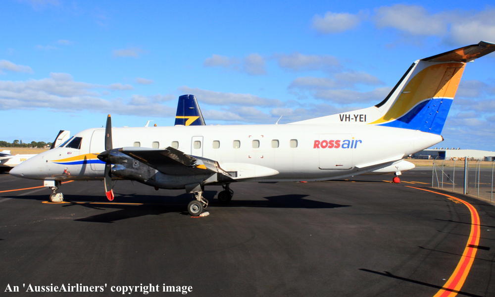 VH-YEI. RossAir - in the standard livery at Adelaide West Beach Airport, February 18, 2017. (T. Haynes Copyright Image 0185-072.) |