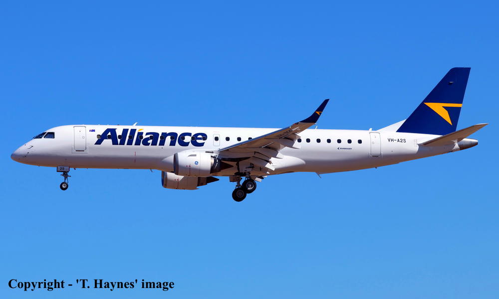 This aircraft was ordered new by JetBlue Airlines, New York, USA - ? Rolled off the production line at Sao Jose dos Campos, Brazil - June ?, 2007 First flown as 'PT-SJY' - June ?, 2007 Powered by General Electric GE CF34-10E6 engines This aircraft is configured with 72 ecomony seats Entered onto the United States Aircraft Register as N274JB - June 21, 2007 Registered to JetBlue Airlines, New York Accepted by JetBlue Airways at Sao Jose dos Campos - June 21, 2007 The aircraft was named 'Good, Better, Blue' The aircraft's tail was painted in the 'Dots' livery Departed Sao Jose dos Campos on the delivery flight to the United States - June ?, 2007 Entered service with JetBlue - June ?, 2007 The aircraft's tail was repainted into the standard 'tartan' livery - November 2014 Operated its last revenue service - January ?, 2025 It was withdrawn from use and stored at Macon (Georgia) - January 14, 2025 Test flown Macon - Macon as 'B68658' - July 23, 2025 Test flown Macon - Macon as 'N274JB' - August 07, 2025 Test flown Macon - Macon as 'N274JB' - August 09, 2025 Departed Macon (Georgia) on the delivery flight to Australia as SXI2536 - August 14, 2025 It arrived at Brisbane (11:14 AEST) on completion of the delivery flight from the United States - August 17, 2025 Ferry route: Macon - Oakland - Kailua - Kona (Hawaii) - Majuro - Brisbane Ferried Brisbane - Rockhampton as SXI2536 - August 17, 2025 The aircraft was repainted into the standard 'Alliance' livery by Flying Colours at Rockhampton Cancelled from the United States Aircraft Register - August 26, 2025 Entered onto the Australian Aircraft Register as VH-A2S - August 26, 2025 Registered to Alliance Airlines Pty Ltd, Brisbane, Queensland Ferried Rockhampton (Queensland) - Wagga Wagga (New South Wales) as QQ9810 - November 25, 2025 Ferried Wagga Wagga (New South Wales) - Rockhampton (Queensland) as QQ9826 - December 15, 2025 Test flown Rockhampton - Rockhampton as QQ9810 - December 23, 2025 Ferried Rockhampton - Brisbane as QQ9820 - December 23, 2025 Entered service operating Flight QQ4824 Brisbane - The Granites (Northern Territory) - December 29, 2025 Current with Alliance Airlines |