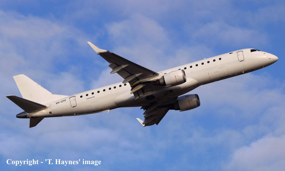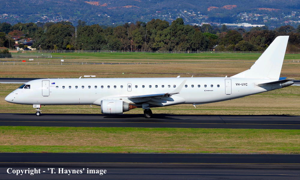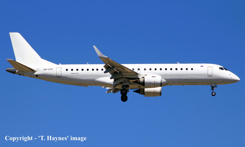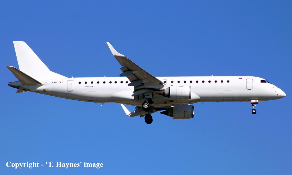 This aircraft was ordered by Copa Airlines, Panama - ? Rolled off the production line at Sao Jose dos Campos, Brazil - November 2005 First flown as 'PT-STQ' - November 2005 Powered by General Electric GE34-10E6 engines Entered onto the Panama Aircraft Register as HP-1556CMP - December 15. 2005 Registered to Copa Airlines, Panama Accepted to Copa Airlines at Sao Jose dos Campos - December 15, 2005 The aircraft was withdrawn from service at San Jose, Costa Rica - March 19, 2020 Cancelled from the Panama Aircraft Register - February 11, 2021 Entered onto the United States Aircraft Register as N916QQ - February 11, 2021 Registered to Azorra Aviation, Fort Lauderdale, Florida Sold to Alliance Airlines, Australia - May 2021 Departed Costa Rica (Sao Jose dos Campos) on the delivery flight to Australia as SXI2130 - May 21, 2021 It arrived at Brisbane (10:07 local) on completion of the delivery flight from Costa Rica - May 25, 2021 Ferry route: San Jose - San Diego - Honolulu - Majuro - Tarawa - Brisbane Cancelled from the United States Aircraft Register - May 25, 2021 Entered onto the Australian Aircraft Register as VH-UYC - June 04, 2021 Registered to Bravo Airlines Pty Ltd, Brisbane Leased to Alliance Airlines Pty Ltd, Brisbane as the registered operator Operated its first revenue service Canberra - Darwin as QQ9822 - June 17, 2021 Current with Alliance Airlines |