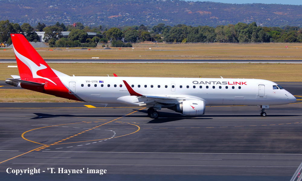 This aircraft was ordered by Copa Airlines, Panama - ? Rolled off the production line at Sao Jose dos Campos, Brazil - July 2007 First flown as 'PT-SNP' - July 2007 Powered by General Electric GE34-10E6 engines Entered onto the Panama Aircraft Register as HP-1562CMP - July 27, 2007 Registered to Copa Airlines, Panama Accepted to Copa Airlines at Sao Jose dos Campos - July 27, 2007 Sub-leased to Copa Colombia t/a Aero Republica - November ?, 2007 Returned to Copa Airlines at the end of the sub-lease - December ?, 2008 Sub-leased to Copa Colombia t/a Aero Republica - November ?, 2010 Returned to Copa Airlines at the end of the sub-lease - ?, 2018 The aircraft was withdrawn from service at San Jose, Costa Rica - March 09, 2020 Cancelled from the Panama Aircraft Register - March 09, 2021 Entered onto the United States Aircraft Register as N995QQ - March 09, 2021 Registered to TPX Aircraft Solutions Inc Trustee, North Salt Lake City, Utah Sold to Alliance Airlines, Australia - ? Departed San Jose on the delivery flight to Australia - July 2021 It arrived at Brisbane on completion of the delivery flight from Cost Rica - July ?, 2021 Delivery route: San Jose - San Diego - Honolulu - Majuro - Brisbane Cancelled from the United States Aircraft Register - July 26, 2021 Entered onto the Australian Aircraft Register as VH-UYN - August 23, 2021 Registered to Bravo Airlines Pty Ltd, Brisbane Leased to Alliance Airlines Pty Ltd, Brisbane as the registered operator Operated its first revenue service Brisbane - Rockhampton as QQ9828 - August 26, 2021 Operated its last service in the 'Alliance' livery Brisbane - Townsville as QF1976 - February 11, 2025 The aircraft was repainted at Townsville by Flying Colours into the QantasLink 'silver roo' livery Ferried Townsville - Adelaide (West Beach) as QQ9823 - February 24, 2025 Returned to service Adelaide (West Beach) - Canberra as QF1976 - February 27, 2025 Current with Alliance Airlines / QantasLink |