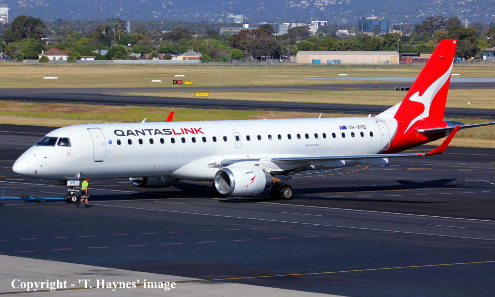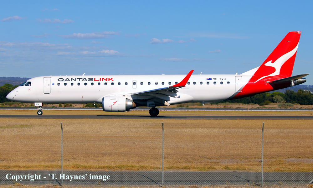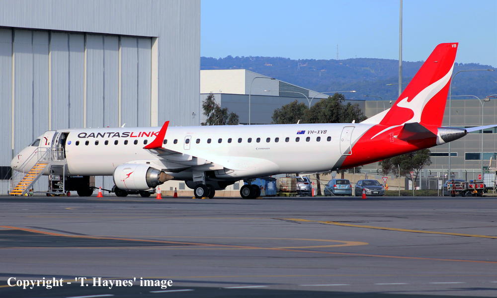 VH-XVB. QantasLink - in the 'Silver Roo' livery at Adelaide West Beach Airport, July 31, 2025. (T. Haynes Copyright Image 0190-560.) |