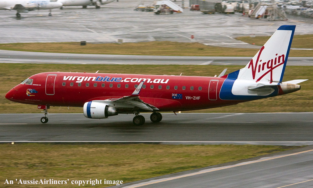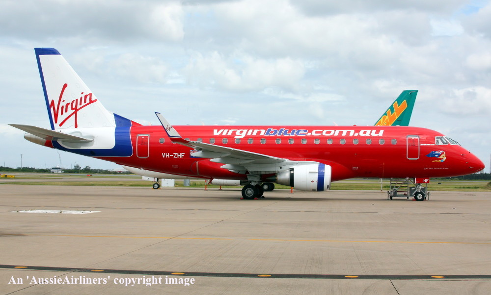 VH-ZHF. Virgin Blue - 'Little Miss Sunshine Coast' in the standard livery at Brisbane Airport, January 09, 2009. (R. N. Smith Collection Copyright Image 0190-015.) |