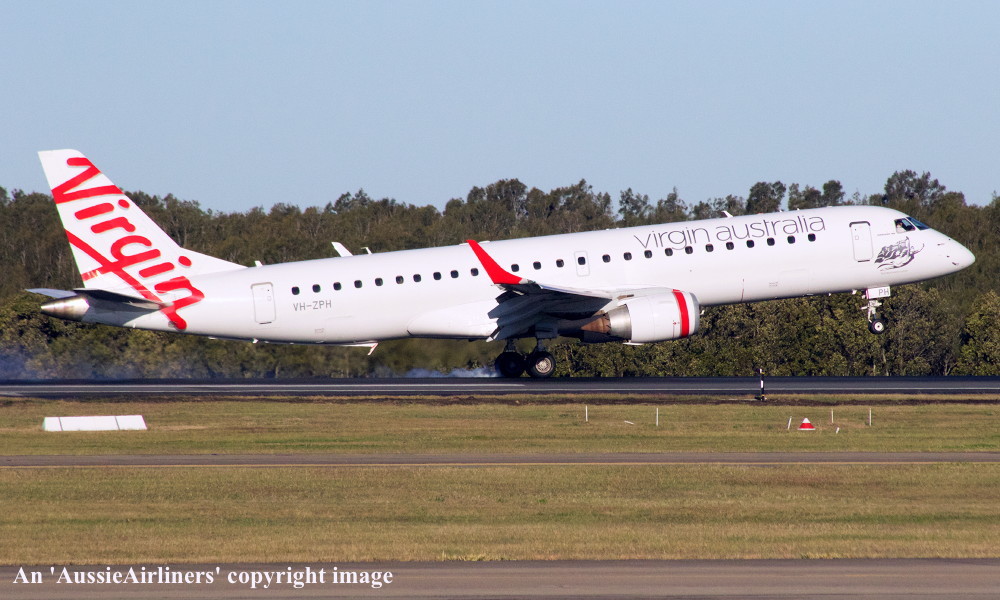 VH-ZPH. Virgin Australia - 'Honeymoon Cove' in the standard livery at Brisbane Airport, July 07, 2016. (M. Cook Copyright Image 0190-056.) |