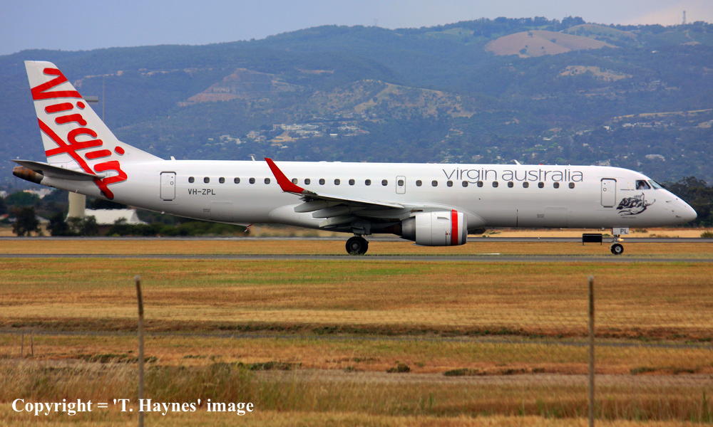 VH-ZPL. Virgin Australia - 'Clifton Beach' in the standard livery at Adelaide West Beach Airport, March 26, 2016. (T. Haynes Copyright Image 0190-608.) |
