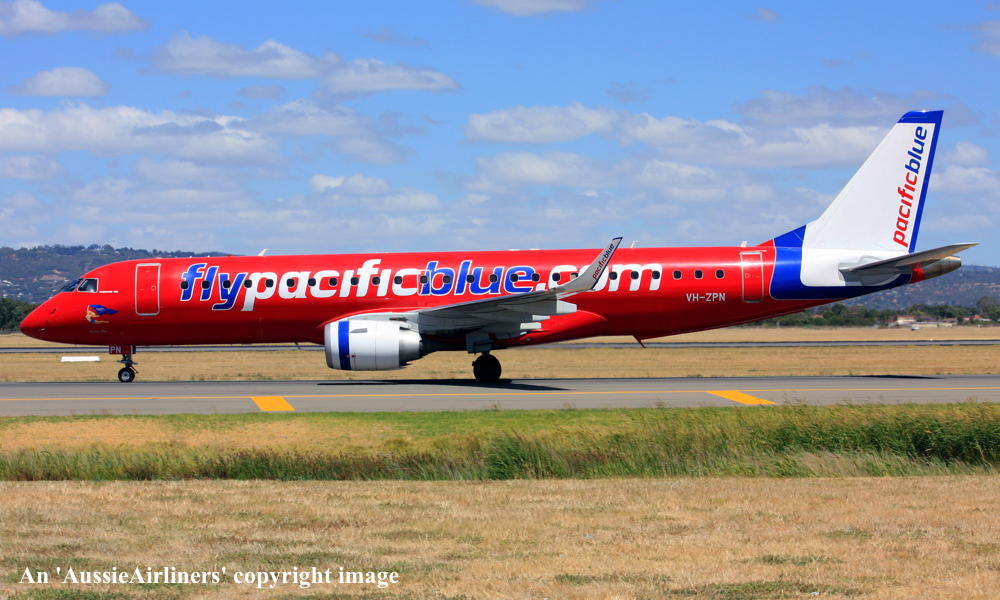 VH-ZPN. Pacific Blue - 'Kanga Blue' in the standard livery at Adelaide West Beach Airport, January 26, 2013. (T. Haynes Copyright Image 0190-222.) |