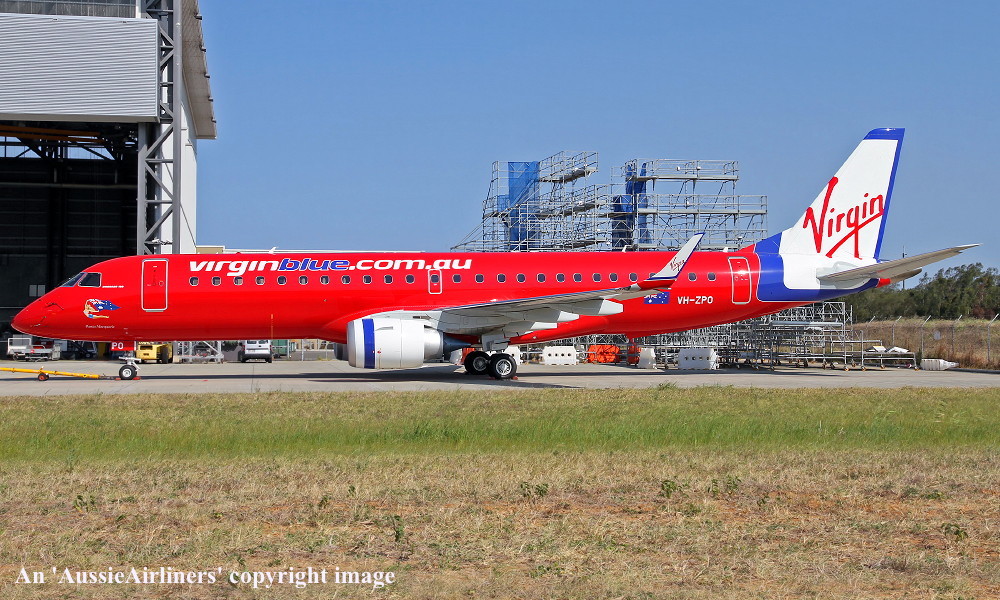 This aircraft was ordered new by Virgin Blue - 2007 Rolled off the production line at Sao Jose dos Campos, Brazil - September 2009 First flown as PT-TXJ - October 2009 Powered by General Electric GE CF34-10E5 engines The aircraft was configured with C6/Y92 seats Entered onto the Australian Aircraft Register as VH-ZPO - September 13, 2009 Registered to VB E190 2009 No 2 Pty Ltd Leased to Virgin Blue as the registered operator Accepted by Virgin Blue at Sao Jose dos Campos - November 2009 Departed Sao Jose dos Campos on the delivery flight to Australia as DJ9082 - November 19, 2009 It arrived at Brisbane on completion of the delivery flight - November 23, 2009 Delivery route: Sao Jose dos Campos - Curacao - Brownsville - Tucson - San Jose - Lihue - Apia - Brisbane The aircraft was named 'Portia Macquarie' Operated its first revenue service Brisbane - Adelaide (West Beach) as DJ1384 - December 09, 2009 Operated inaugural service Perth - Christmas Island - Cocos Island - Perth as DJ2901/2952/2980 - April 03, 2010 Virgin Blue was renamed Virgin Australia Airlines Pty Ltd - May 04, 2011 Registered to Avolon Aerospace AOE 43 Limited, Dublin, Ireland - July 04, 2012 Leased to Virgin Australia Airlines as the registered operator The aircraft was repainted into the Virgin Australia livery whilst undergoing maintenance in Portugal - August 2013 The aircraft was renamed 'Boomerang Beach' Current with Virgin Australia Airlines |
