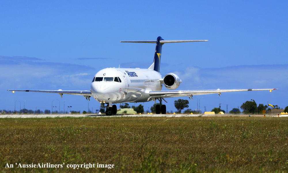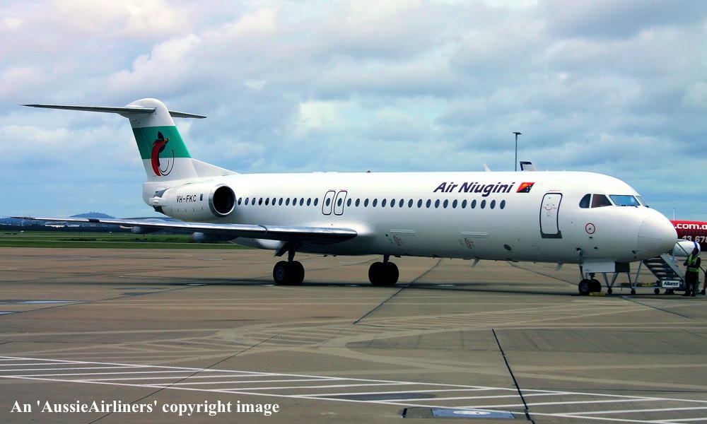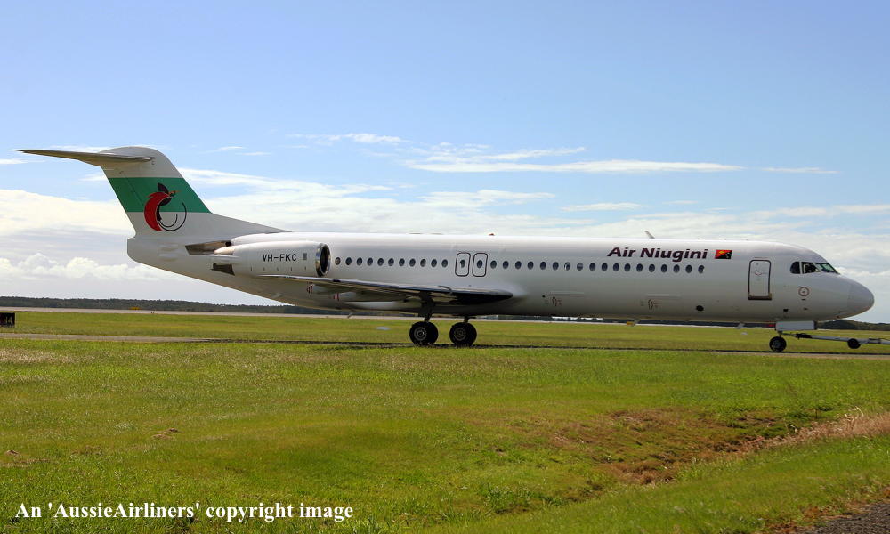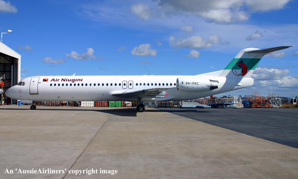 VH-FKC. Fokker F28-0100. c/n 11349. Was also registered as: PH-EZB; N887US; P2-ANB. |