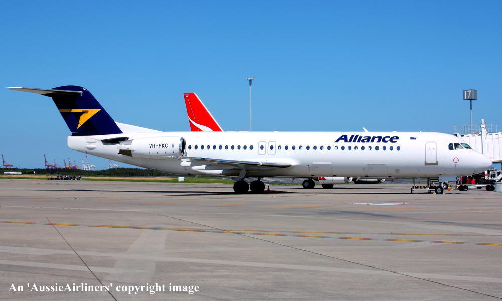 VH-FKC. Alliance - in the standard livery at Brisbane Airport, December 2008. (R. N. Smith Collection Copyright Image 1995-205.) |
