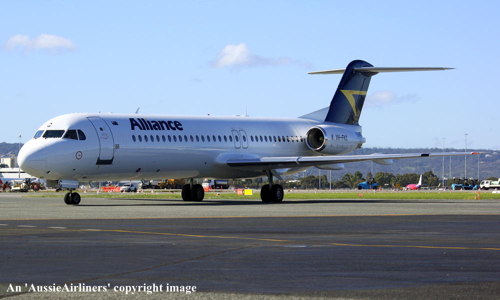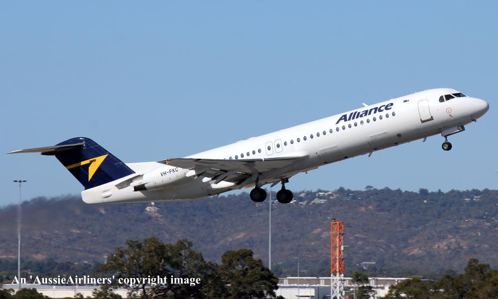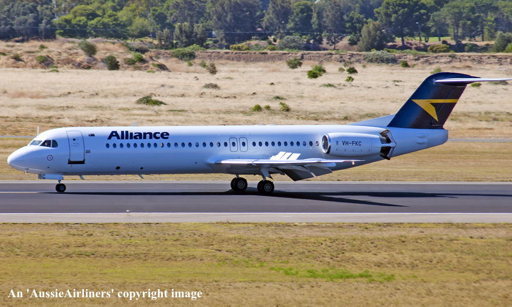 VH-FKC. Alliance - in the standard livery at Perth Airport, July 27, 2011. (R. N. Smith Collection Copyright Image 1995-388.) |