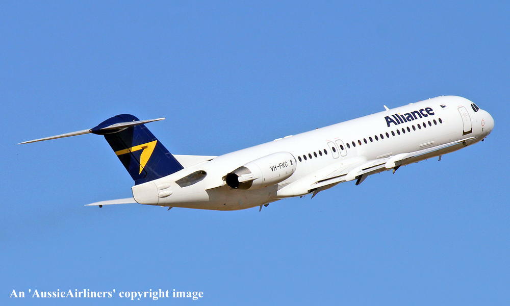 This aircraft was ordered new by US Air - ? The temporary export registration 'E-2239 / PH-EZB' was applied to the aircraft - July 10, 1991 First flown as 'PH-EZB' in US Air livery - August 05, 1991 Powered by Rolls Royce Tay 650-15 engines The temporary export registration 'E-2239 / PH-EZB' was removed from the aircraft - August 27, 1991 It was cleared for export to the United States - August 27, 1991 Entered onto the United States Aircraft Register as N887US - August 27, 1991 Sold and registered to Fokker Aircraft USA Inc - August 27, 1991 Departed Amsterdam (Schiphol) on the delivery flight to the United States via Keflavik - August 29, 1991 Sold and registered to US Air Inc - September 03, 1991 Registered to US Airways when US Air changed its name - February 27, 1997 Withdrawn from service and stored at Mojave - 2001 Sold to Retirement Systems of Alabama Sold to Alliance Airlines - 2004 It arrived at Brisbane on completion of the delivery flight SXA141 - July 30, 2004 Ferried to Australia by Southern Cross Aviation Delivery route: Mojave - Camarillo - Seattle - Anchorage - Nome - Magadan (Russia) - Yushno (Russia) - Ceju (South Korea) - Manila - Biak - Cairns - Brisbane Entered onto the Australian Aircraft Register as VH-FKC - August 06, 2004 Registered to Alliance Airlines, Brisbane Test flown at Brisbane in the Air Niugini livery - May 07, 2005 Cancelled from the Australian Aircraft Register - May 12, 2005 Entered onto the Papua New Guinea Aircraft Register as P2-ANB - May 12, 2005 Registered to Alliance Airlines, Brisbane Leased to Air Niugini as the registered operator Handed over to Air Niugini in Brisbane - May 14, 2005 Ferried Brisbane - Port Moresby as PX6010 - May 15, 2005 Operated its first Air Niugini revenue service Port Moresby - Cairns as PX090 - May 15, 2005 Withdrawn from service at Port Moresby - May 2008 Ferried Port Moresby - Brisbane on return to Alliance Airlines at the end of the lease - May 14, 2008 Cancelled from the Papua New Guinea Aircraft Register - May 14, 2008 Entered onto the Australian Aircraft Register as VH-FKC - May 20, 2008 Registered to Aircraft Leasing No 1 Pty Ltd Leased to Alliance Airlines Pty Ltd as the registered operator It was configured with 8 business class and 92 economy class seats Operated its first Alliance revenue service Brisbane - Cloncurry - June 23, 2008 Current with Alliance Airlines |