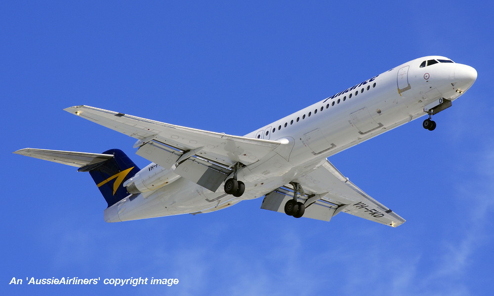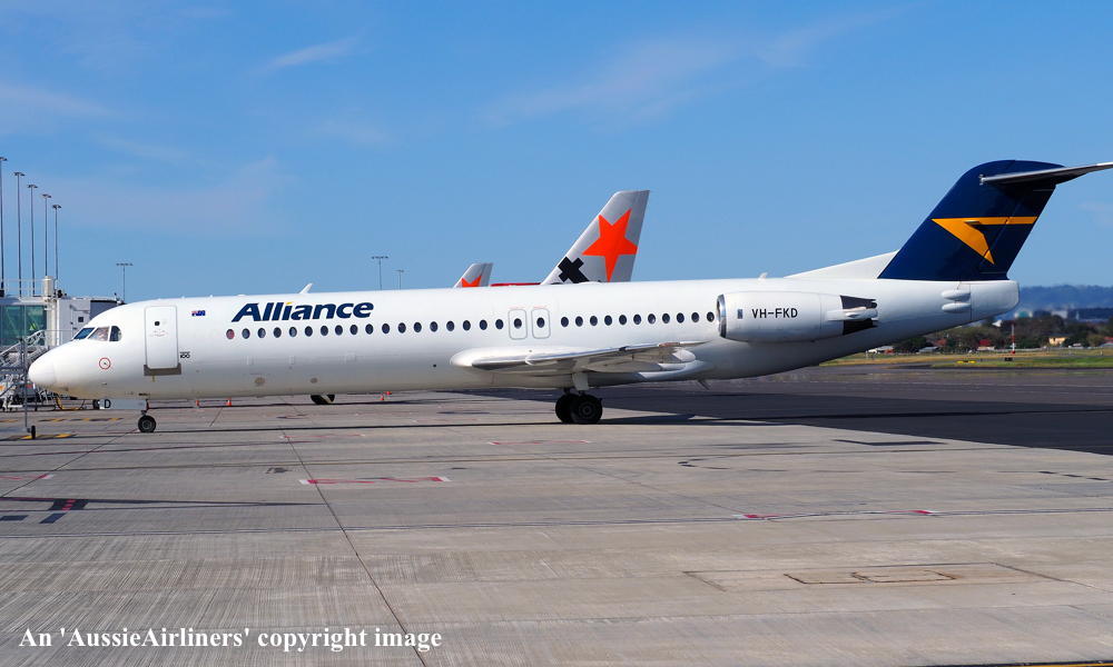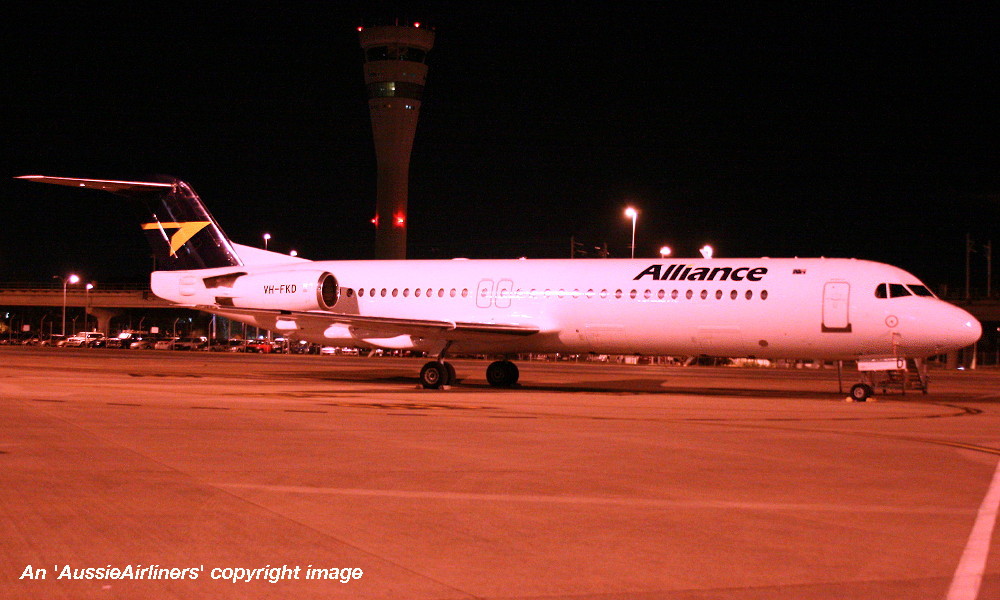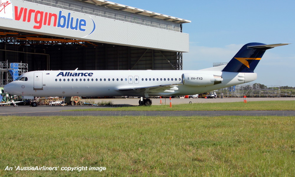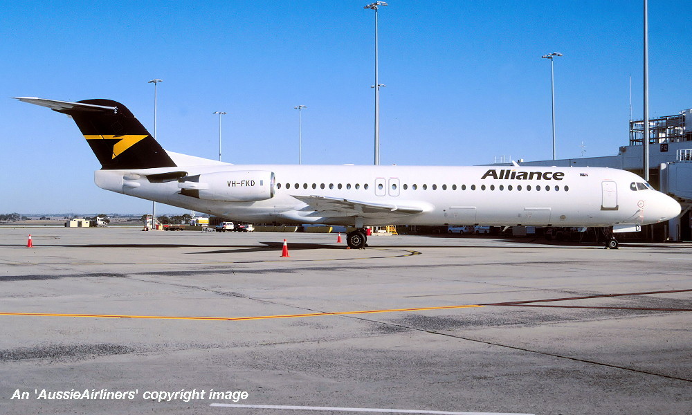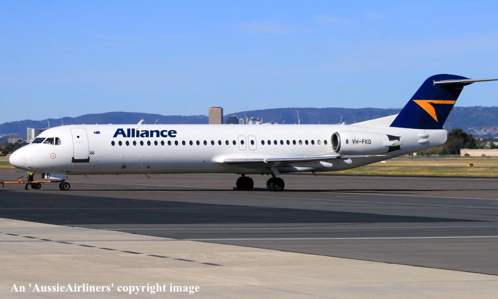 This aircraft ordered new by US Air - ? The temporary export registration 'E-1145 / PH-EZL' was placed on the aircraft - ? First flown as 'PH-EZL' in the US Air livery - September 20, 1991 Powered by Rolls Royce Tay 650-15 engines Entered onto the United States Aircraft Register as N888AU - October 03, 1991 Registered to Fokker Aircraft USA Inc The temporary export registration 'E-1145 / PH-EZL' was removed from the aircraft - October 08, 1991 It was cleared for export to the United States - October 08, 1991 Departed Amsterdam (Schiphol) on the delivery to the United States via Reykjavik - October 10, 1991 Registered to US Air Inc - October 15, 1991 Registered to US Airways when US Air was renamed - February 27, 1997 Operated its final US Airways revenue service Charlotte - Pittsburgh - December 01, 2001 Ferried Pittsburgh - Mojave for storage - December 04, 2001 Sold to The Employees Retirement System of Alabama - 2004 Registered to Wells Fargo Bank Northwest / ERSA - May 23, 2004 Sold to Alliance Airlines, Australia It arrived at Brisbane on completion of the delivery flight as 'Southern Cross 241' - August 09, 2005 Ferry route: Camarillo - Payne Field (Washington) - Anchorage - Nome - Magadan (Russia) - Yuzhno Sakhalinsk (Russia) - Cheju (South Korea) - Manila - Biak - Cairns - Brisbane Entered onto the Australian Aircraft Register as VH-FKD - August 25, 2005 Registered to Aircraft Leasing No 2 Pty Ltd Leased to Alliance Airlines Pty Ltd as the registered operator It was configured with 8 business class and 92 economy class seats Operated its first Alliance revenue service Townsville - Phosphate Hill as QQ835 - December 13, 2006 Current Alliance Airlines |