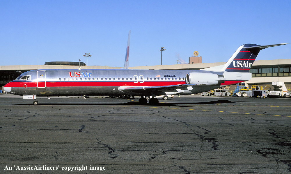 N890US. US Air - in the standard livery at Pittsburg Airport, October 1993. (R. N. Smith Collection Copyright Image 1995-195.) |