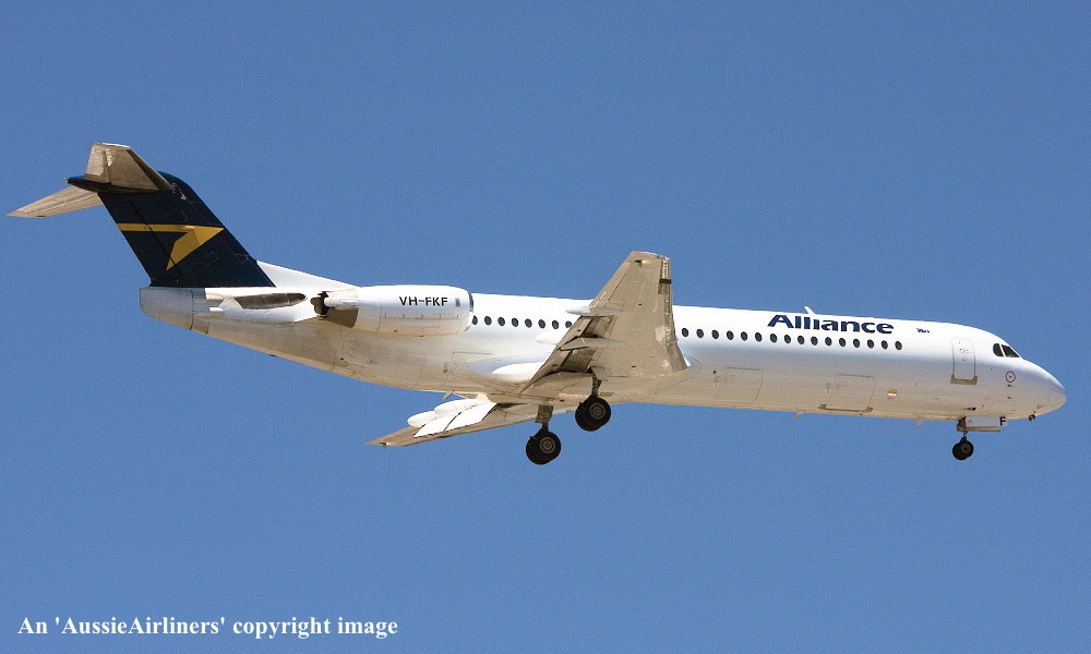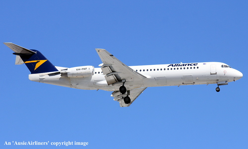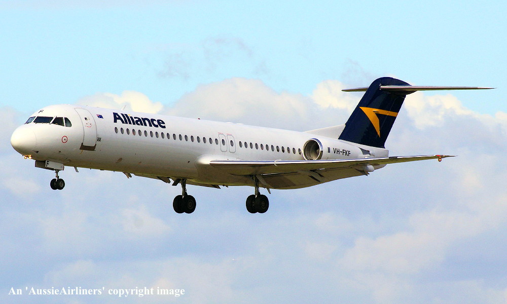 This aircraft was ordered new by US Air Inc and registration N890US reserved - January 13, 1988 The temporary export registration 'E-1178 / PH-EZC' was applied to the aircraft - October 09, 1991 The temporary export registration 'E-1178 / PH-EZC' was reserved by Fokker Aircraft B.V. - October 09, 1991 First flown as 'PH-EZC' in the US Air livery - November 05, 1991 Powered by Rolls Royce Tay 650-15 engines Entered onto the United States Aircraft Register as N890US - November 19, 1991 Sold to Fokker Aircraft USA - November 19, 1991 The temporary export registration 'E-1178 / PH-EZC' was removed from the aircraft - November 29, 1991 It was cleared for export to the United States - November 29, 1991 Departed Amsterdam (Schiphol) on the ferry flight to the United States via Keflavik - November 29, 1991 Registered to US Air Inc - December 01, 1991 Sold to US Air Inc - December 02, 1991 Registered to US Airways when US Air Inc was renamed - February 27, 1997 Withdrawn from use and stored at Mojave - January 22, 2002 Sold to Employees Retirement System, Montgomery, Alabama - 2004 Registered to Wells Fargo Bank Northwest / ERSA - May 23, 2005 Sold to Alliance Airlines - June 2005 It arrived at Brisbane on completion of the ferry flight to Australia as 'Southern Cross 232' - June 29, 2005 Ferry route: Camarillo - Payne Field (Washington) - Anchorage - Nome - Magadan (Russia) - Yuzhno Sakhalinsk (Russia) - Cheju (South Korea) - Manila - Biak - Cairns - Brisbane Entered onto the Australian Aircraft Register as VH-FKF - July 21, 2005 Registered to Aircraft Leasing No 2 Pty Ltd, Brisbane Leased to Alliance Airlines Pty Ltd as the registered operator It was configured with 100 economy class seats Test flown at Brisbane after overhaul - March 08, 2006 Ferried Brisbane - Sydney (Richmond) for repainting into the Alliance livery by Tasman Aviation - March 09, 2006 Ferried Brisbane - Townsville as QQ999 - March 28, 2006 Operated its first revenue service Townsville - The Monument - Townsville as QQ831/832 - March 29, 2006 Ferried Brisbane - Alice Springs - Perth as 'Unity 970' - August 30, 2006 Operated a proving flight Perth - Leinster - Mount Keith - Perth as QQ971/972/973 - August 30, 2006 Utilised on BHP Billiton fly-in / fly-out contract Current with Alliance Airlines |