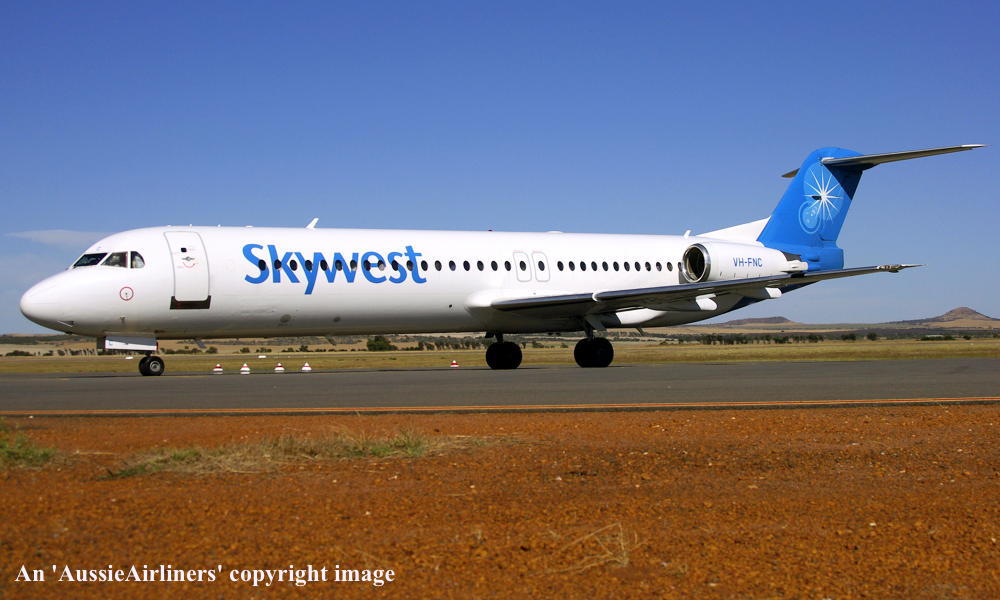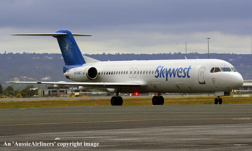 VH-FNC. Skywest - in the standard livery at Perth Airport, August 30, 2012. (M. Lynam Copyright Image 1995-443.) |