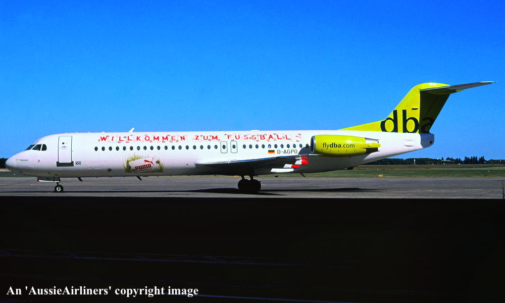 D-AGPO. DBA - in the standard livery with additional 'Willkommen Zum Fussball' titles at an unknown airport, August 2006. (R. N. Smith Collection Copyright Image 1996-056.) |