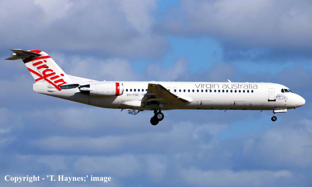VH-FNC. Virgin Australia - in the standard livery at Adelaide West Beach Airport, May 03, 2019. (T. Haynes Copyright Image 1995-947.) |