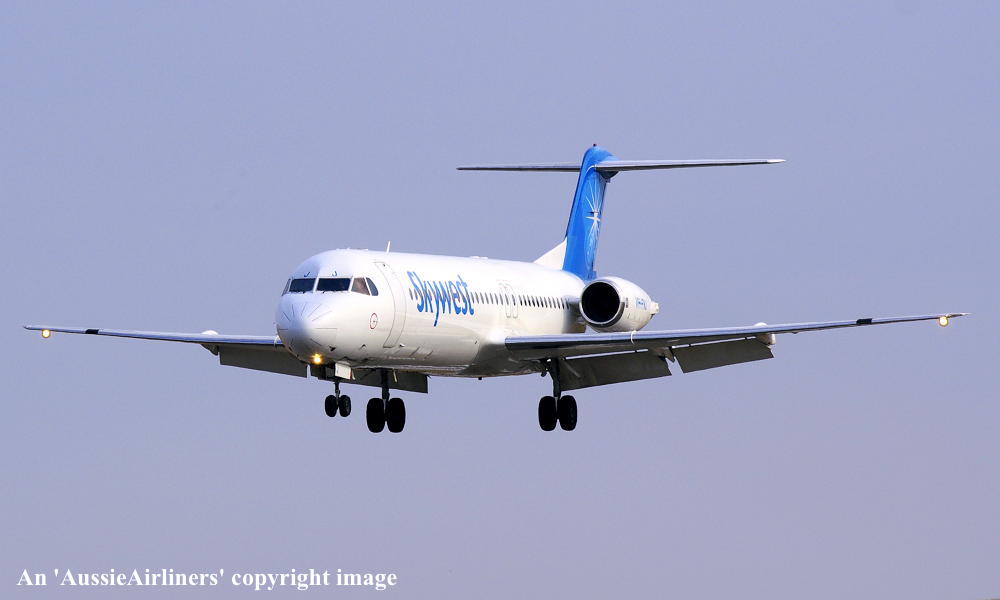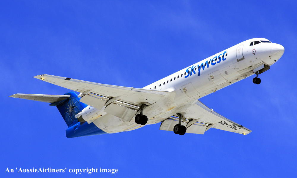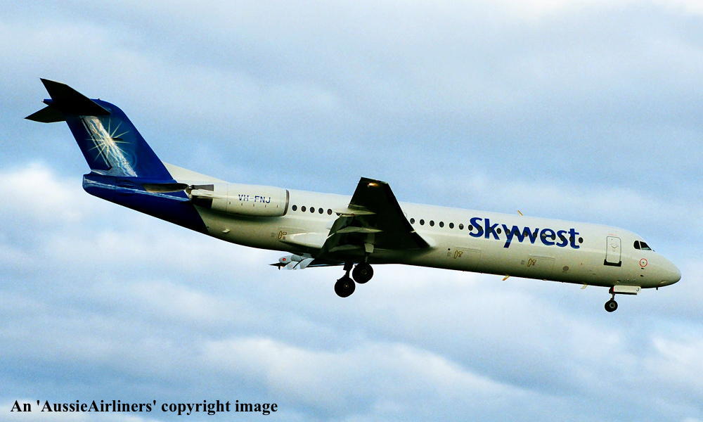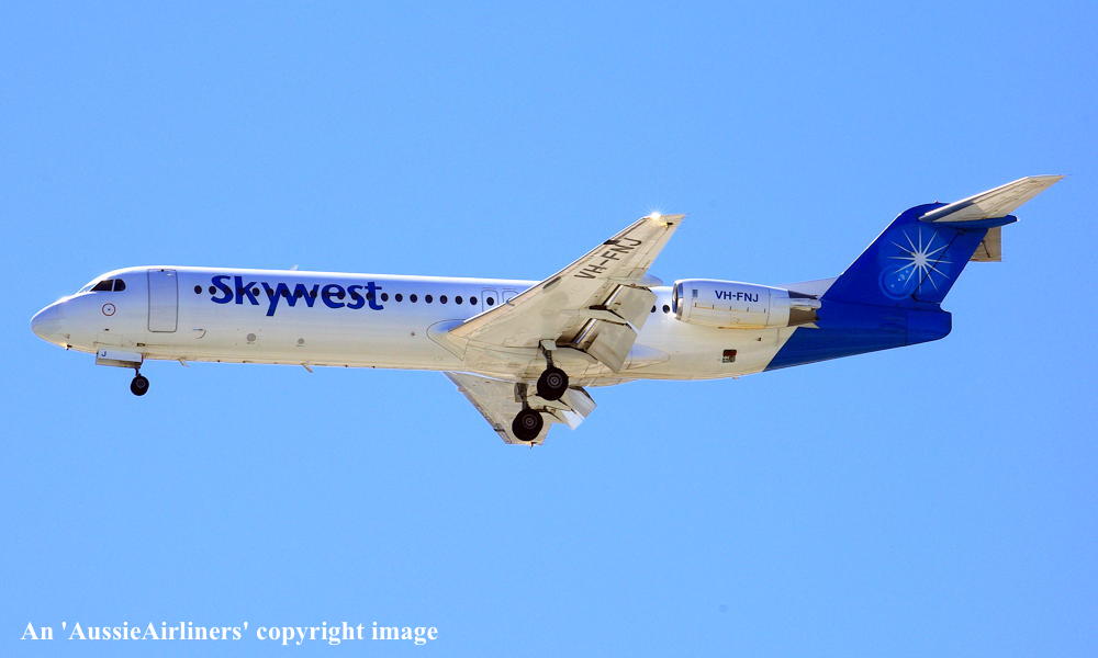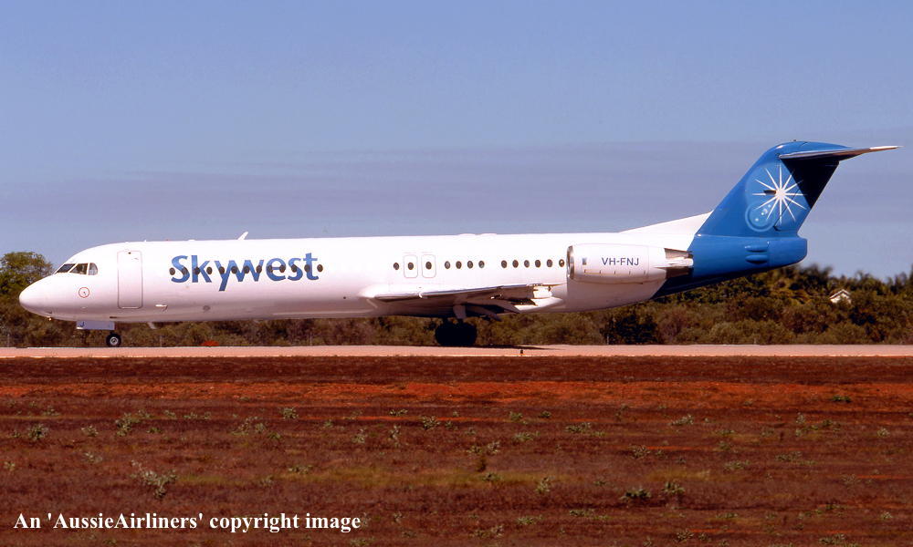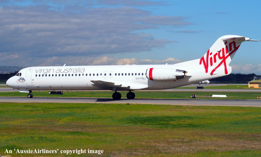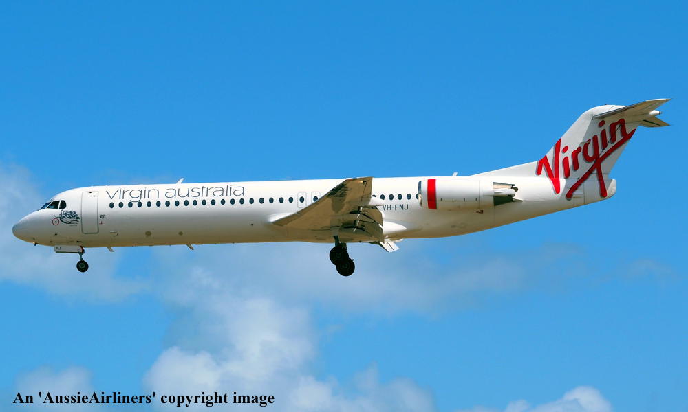 The fuselage was stored at Schiphol after construction as 'Export Airframe B6' - ? The temporary export registration 'E-1329 / PH-EZE' was applied to the aircraft - December 24, 1993 The temporary export registration 'E-1329 / PH-EZE' was reserved by Fokker Aircraft B.V. - December 28, 1993 First flown as 'PH-EZE' in BMA livery - April 14, 1994 Powered by Rolls Royce Tay 650-15 engines The temporary export registration 'E-1329/PH-EZE' was removed from the aircraft - April 22, 1994 It was cleared for export to the United Kingdom - April 22, 1994 Entered onto the British Aircraft Register as G-BVJA (CofR G-BVJA/R1) - April 22, 1994 Accepted by British Midland Airways at Amsterdam (Schiphol) - April 22, 1994 Ferried Amsterdam (Schiphol) - East Midland on delivery to BMA as BMA9911 - April 25, 1994 Operated its first revenue service London (Gatwick) - Teeside - May 01, 1994 Sold to Skywest Airlines Ltd - April 27, 2004 Cancelled from the British Aircraft Register - April 27, 2004 Entered onto the Australian Aircraft Register as VH-FNJ - April 28, 2004 Registered to Skywest Airlines, Perth It arrived at Perth on completion of its ferry flight by Southern Cross Aviation as SXA421 - April 30, 2004 Ferry route: East Midlands - Corfu - Beirut - Al Ain - Colombo - Cocos Islands - Perth Operated its first revenue service Perth - Karratha - Port Headland - Perth as XR25 - May 10, 2004 Operated the inaugural Skywest Port Headland - Denpasar service as XR211 - May 15, 2004 Registered to F100 Pty Ltd - January 12, 2007 Leased to Skywest Airlines (Australia) Pty Ltd as the registered operator Virgin Australia announced its intention to acquire Skywest Airlines - October 30, 2012 Virgin Australia finalised the acquisition of Skywest Airlines - April 11, 2013 Operated its last service in Skywest livery Broome - Perth as VA9812 - September 19, 2013 Leased to Virgin Australia Regional Airlines as the registered operator - September 19, 2013 Ferried Perth - Alice Springs - Townsville for repainting into Virgin Australia livery as VOZ9950 - September 20, 2013 Ferried Townsville (08:16 local) - Alice Springs - Perth (12:20 local) in the new livery as VOZ9951 - October 05, 2013 Aircraft iwas named 'Talbot Bay' Returned to service - ? Current with Virgin Australia Airlines |