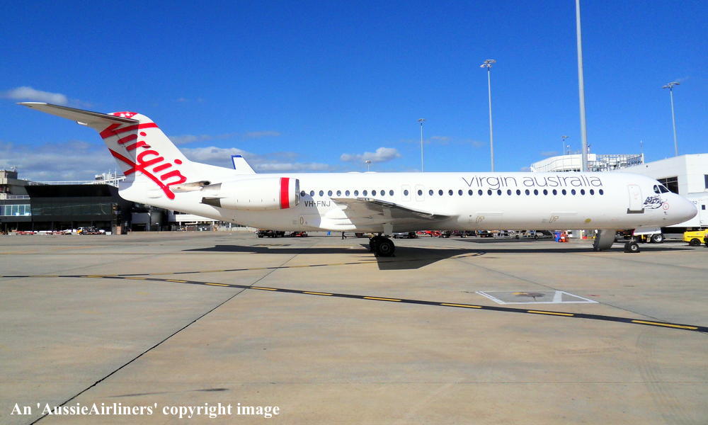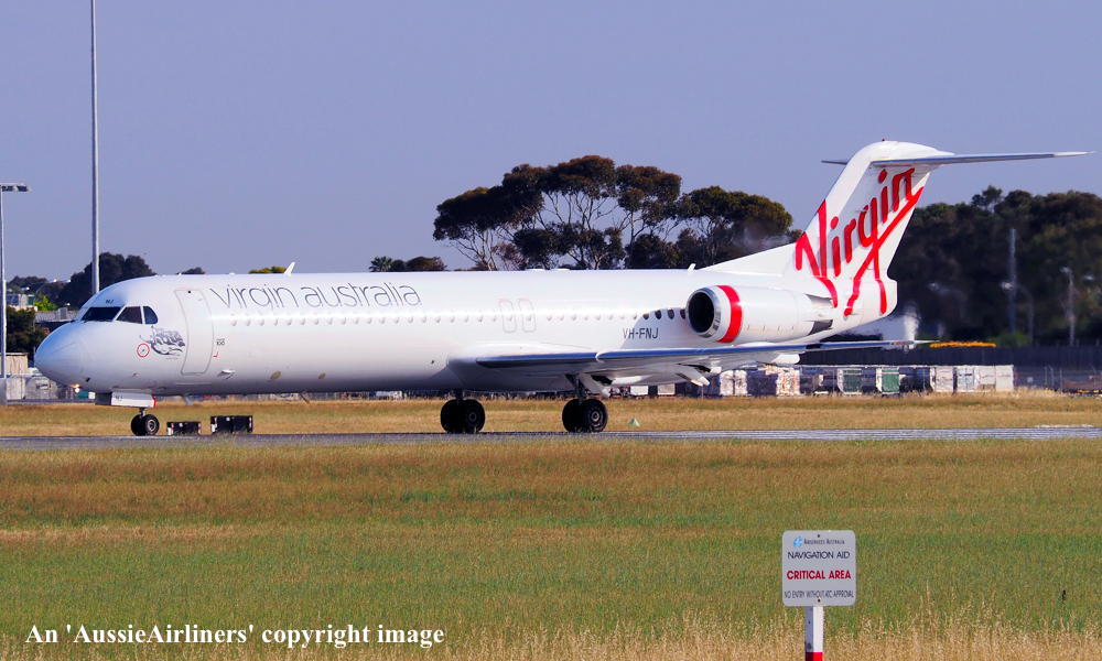 VH-FNJ. Virgin Australia - 'Talbot Bay' in the standard livery at Melbourne Tullamarine Airport, October 11, 2013. (P. Finnigan Copyright Image 1995-682.) |
