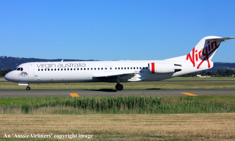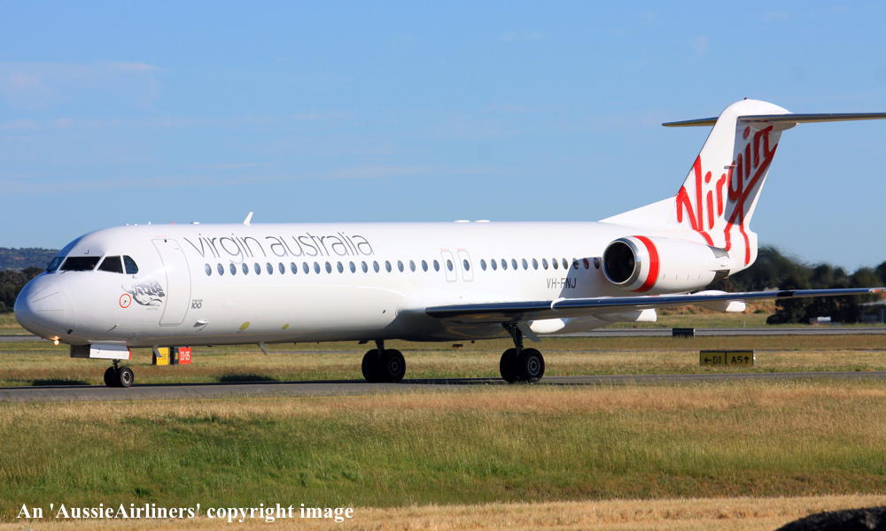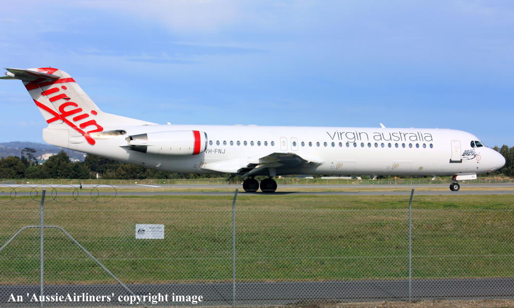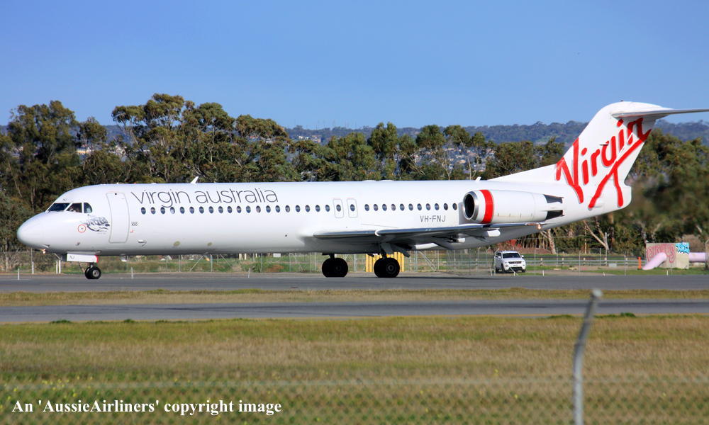 VH-FNJ. Virgin Australia - 'Talbot Bay' in the standard livery at Adelaide West Beach Airport, August 21, 2018. (T. Haynes Copyright Image 1996-139.) |